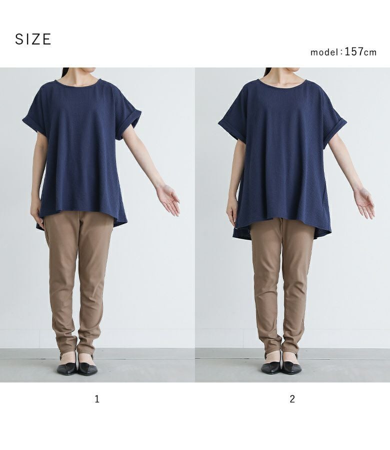 【普段着用】 Tops: M Bottoms: M | 【1】 袖丈:ひじ上15cm位 着丈:ヒップ下少し見える位 腕周り:ややゆったり バスト:ややゆったり 全体:ややゆったり