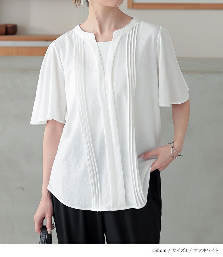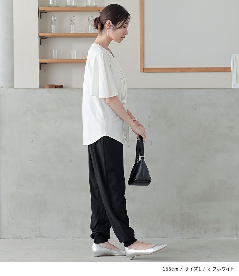 【普段着用】 Tops: S/M Bottoms: S/M | 【1】 袖丈:ひじ上3cm位 着丈:ヒップ真ん中より上位 腕周り:ゆったり バスト:ややゆったり 全体:スッキリ