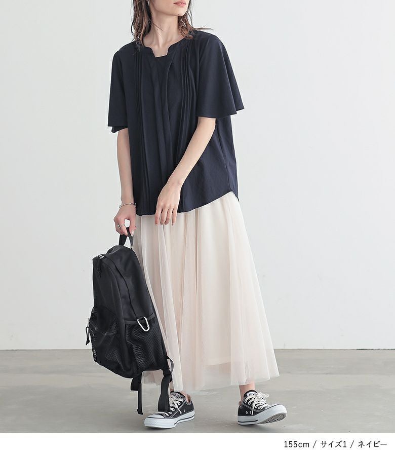 【普段着用】 Tops: S/M Bottoms: S/M | 【1】 袖丈:ひじ上3cm位 着丈:ヒップ真ん中より下位 腕周り:大きい バスト:ゆったり 全体:ゆったり
