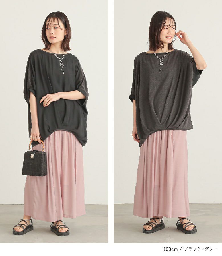 『異素材配色ドレープカットソー』