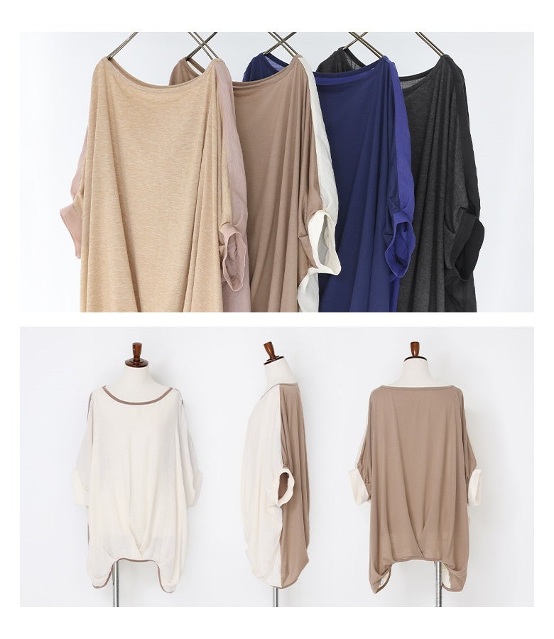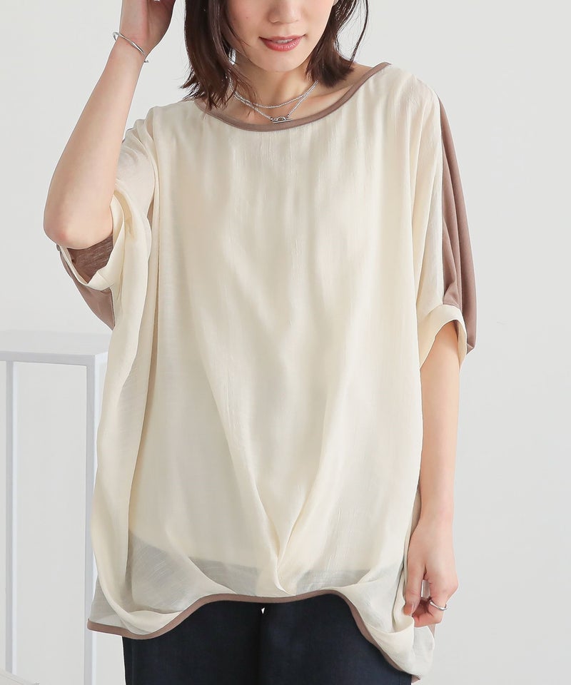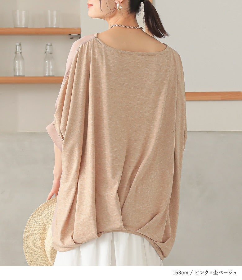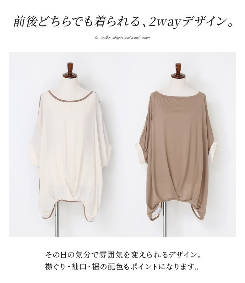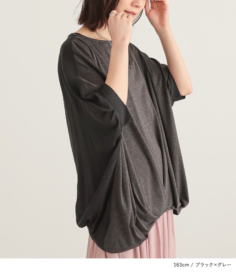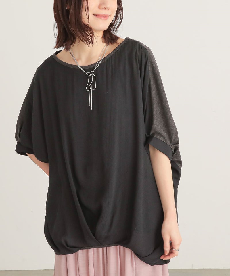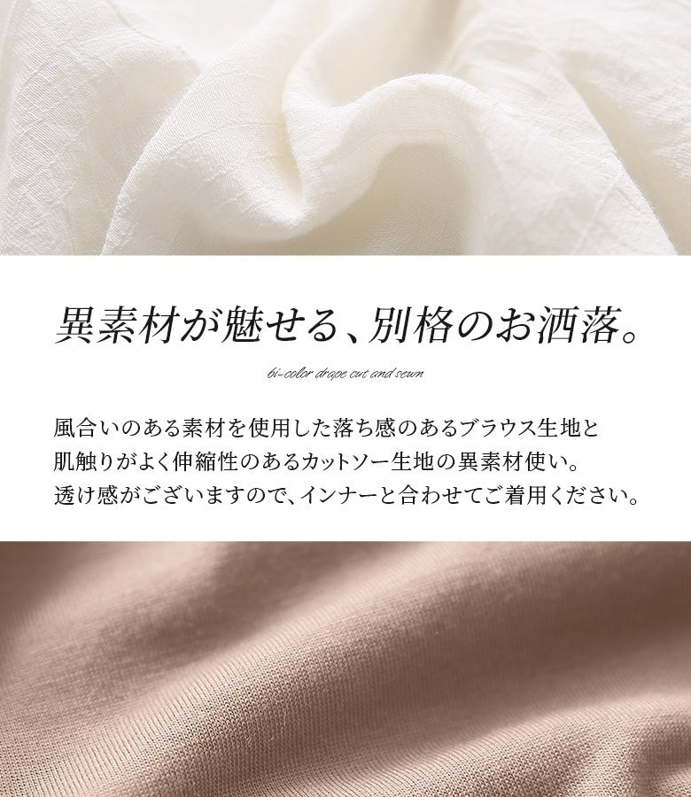 『異素材配色ドレープカットソー』