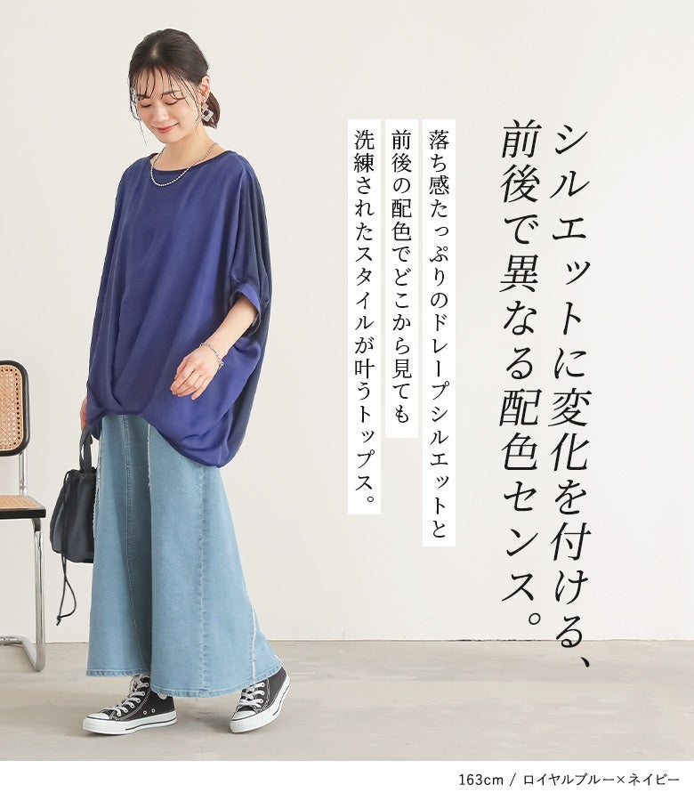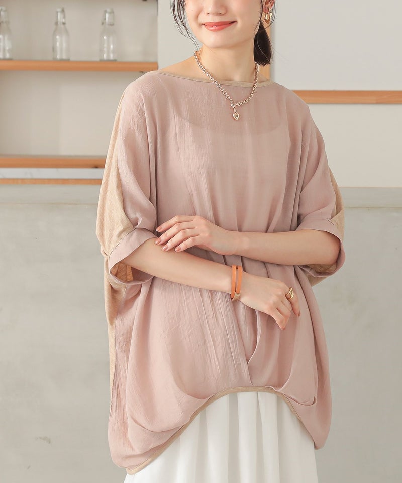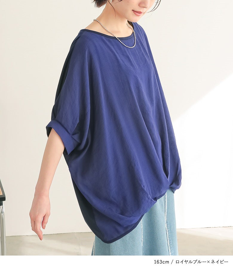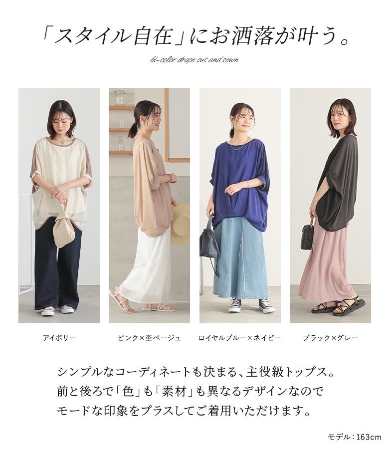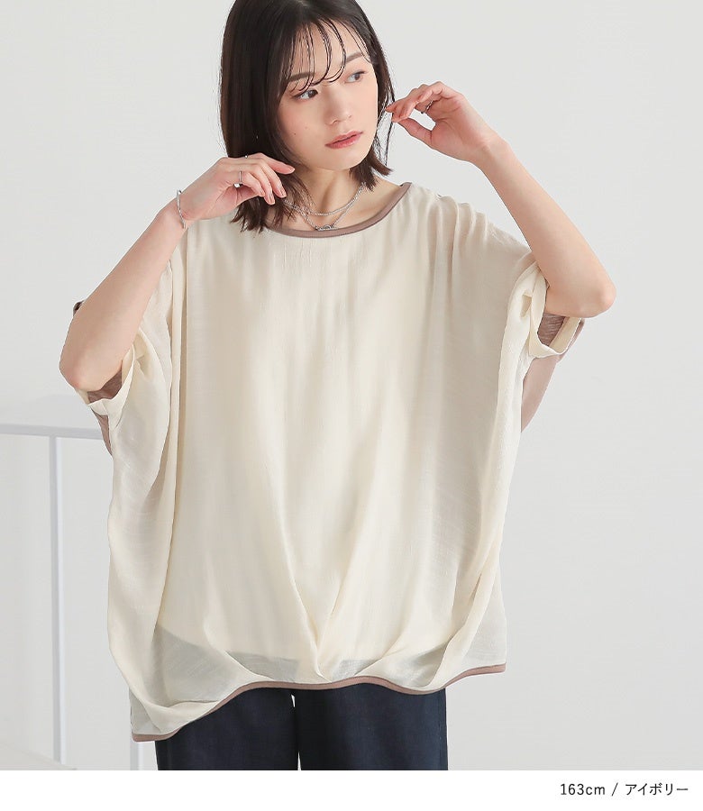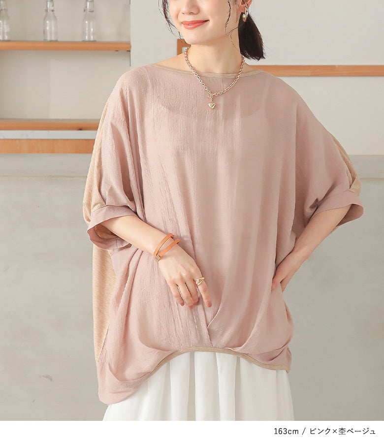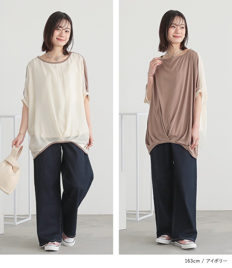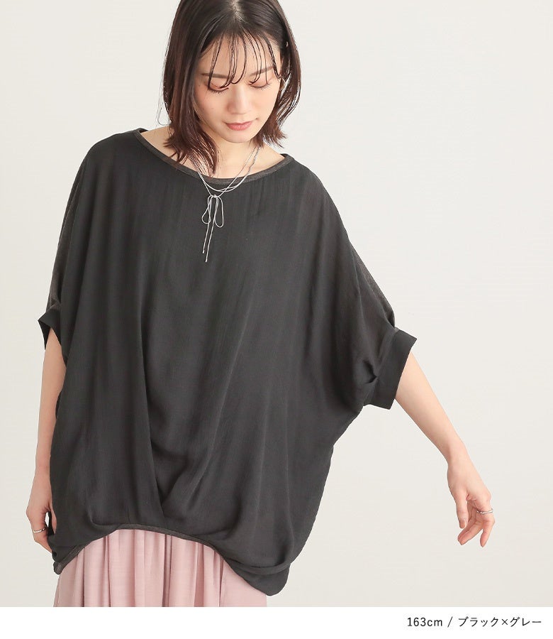『異素材配色ドレープカットソー』