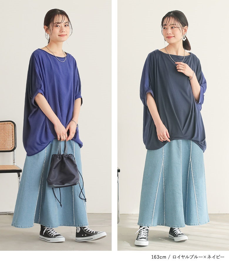 気になっていたのでセールで購入。透けそうなので濃い色のブルーにしました。 届いて驚くほどペラペラで、風を通して涼しいとは思いましたが、着てみるとやや老け見えかな…丈が嫌に長いのとだらんと下がる感じが、スタイルいい人じゃないと可愛くないかも。涼しそうなのでなんとかして着ます。