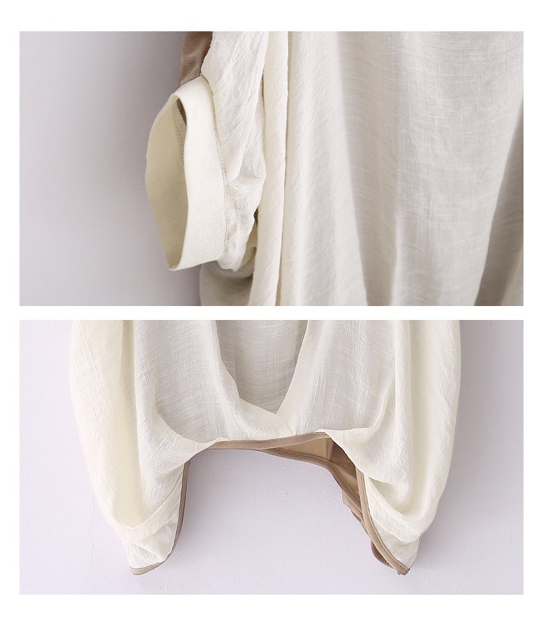 風合いと落ち感のあるブラウス生地と、肌ざわりの良いカットソー生地の異素材使いが大人の品格を醸し出します。