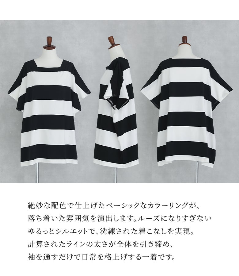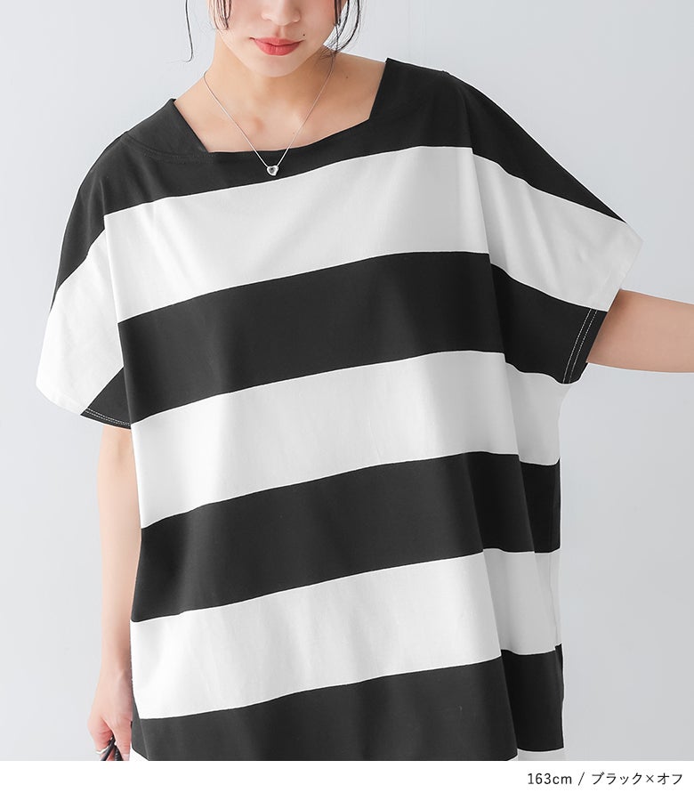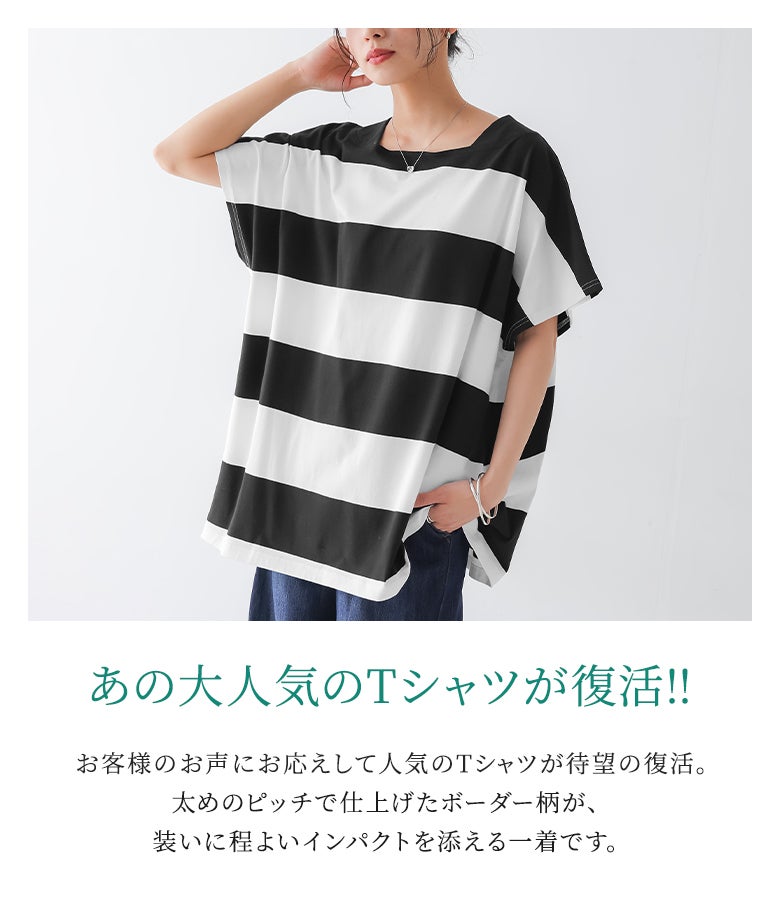 太いボーダーはあまり見かけないので、一目ぼれしました。 ゆったり着られて、とてもかわいいです。