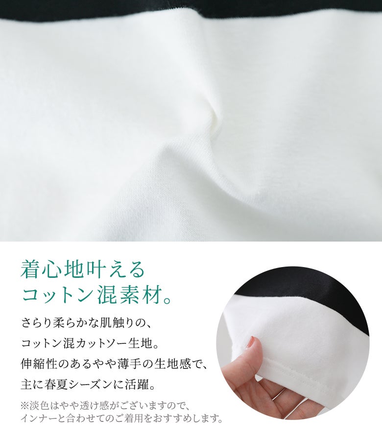 さらりとキメの整ったカットソー生地は素肌にも優しく、ロングシーズン大活躍します。