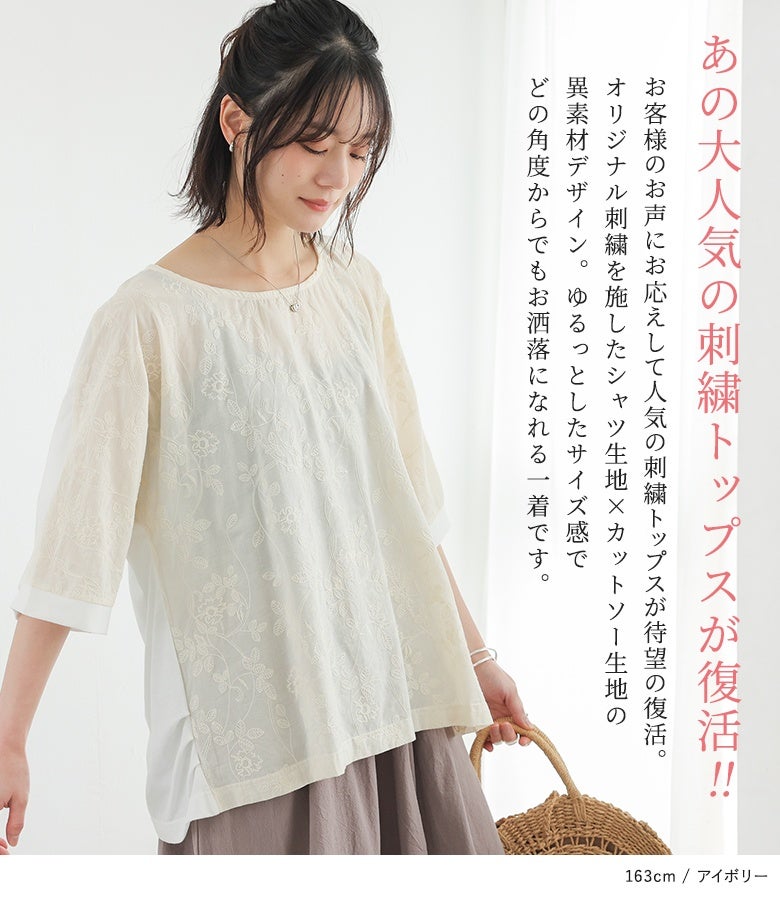 5. 『n'OrLABEL贅沢コットン刺繍ドルマンTシャツ』※メール便可※【10】