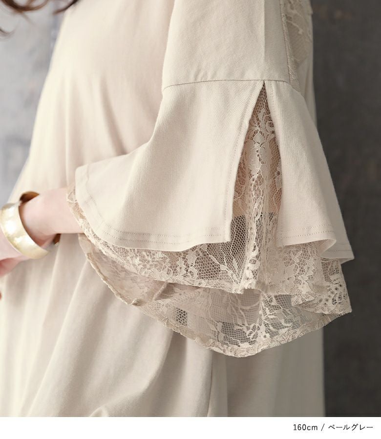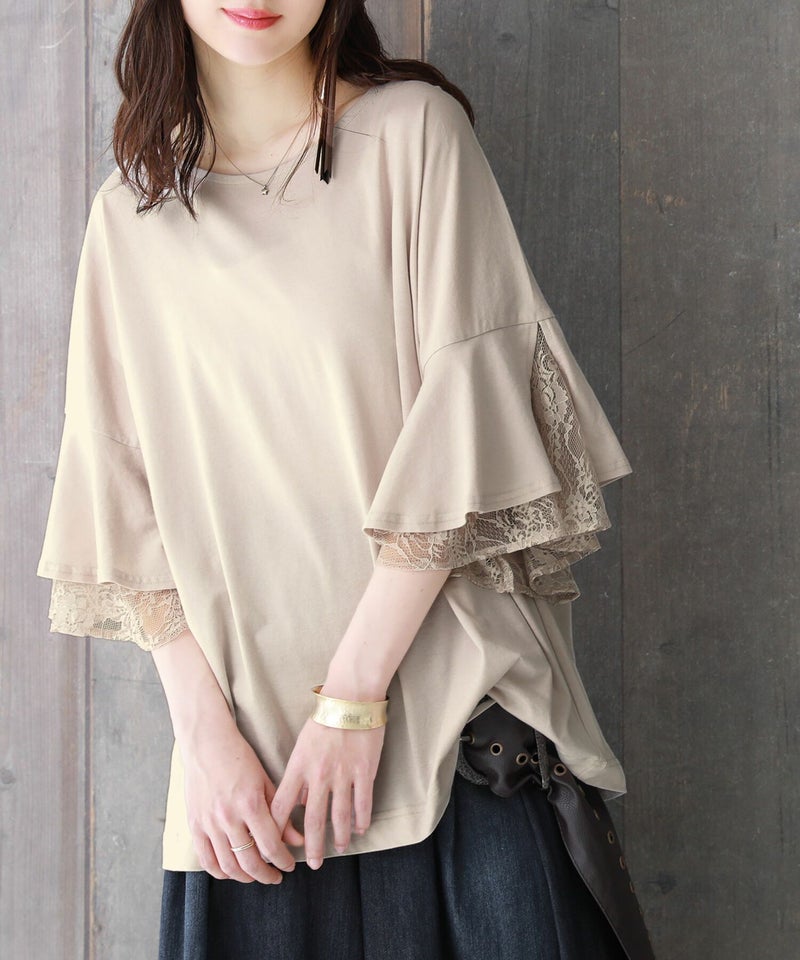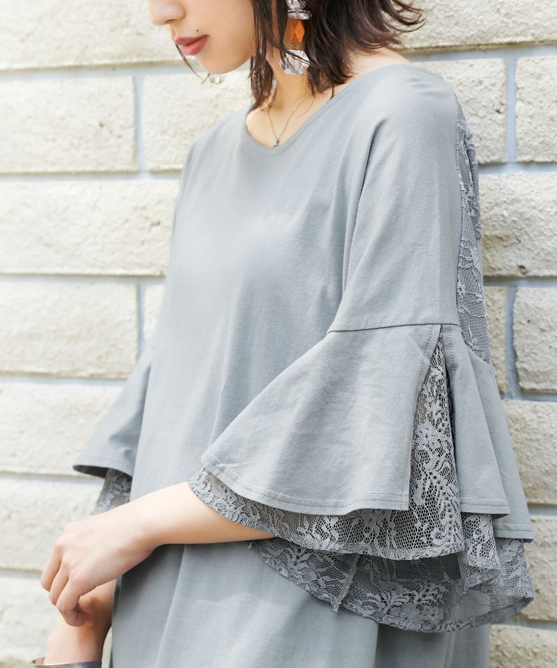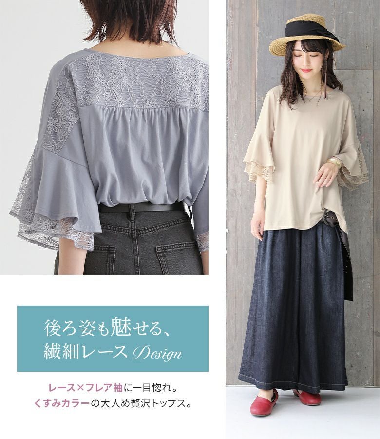 一目惚れ級!贅沢フレアレース袖カットソー。