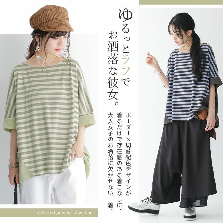 着こなしに差のつく≪n'OrLABEL≫無地×ボーダー切替カットソーです。