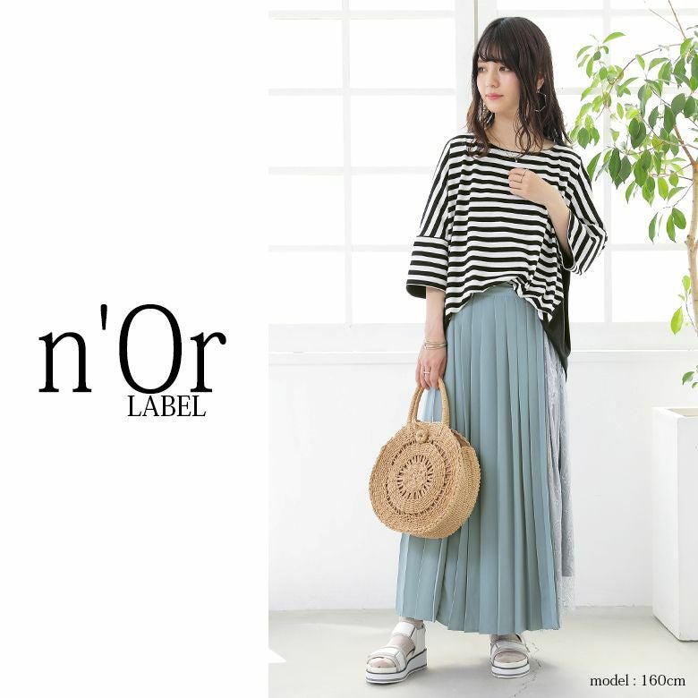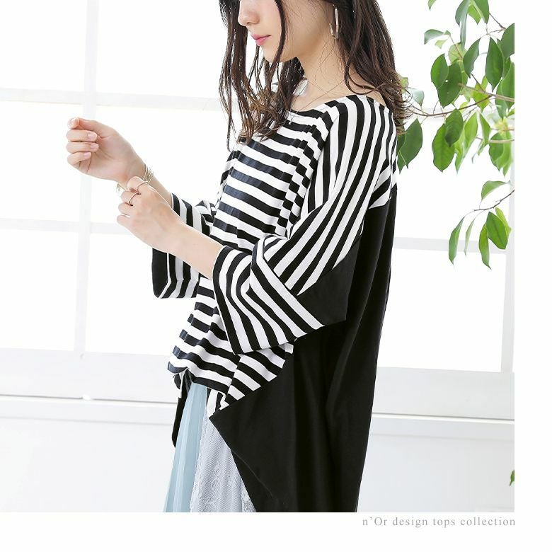 『n'OrLABEL無地×ボーダー切替カットソー』