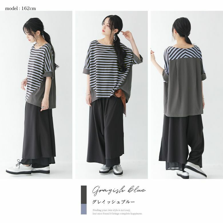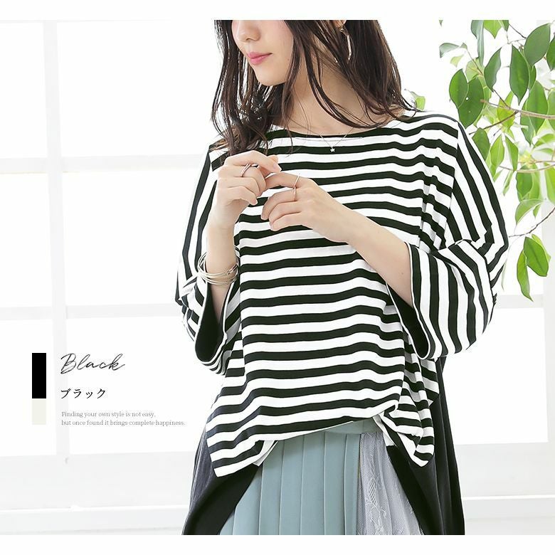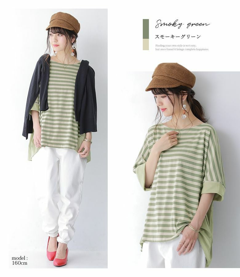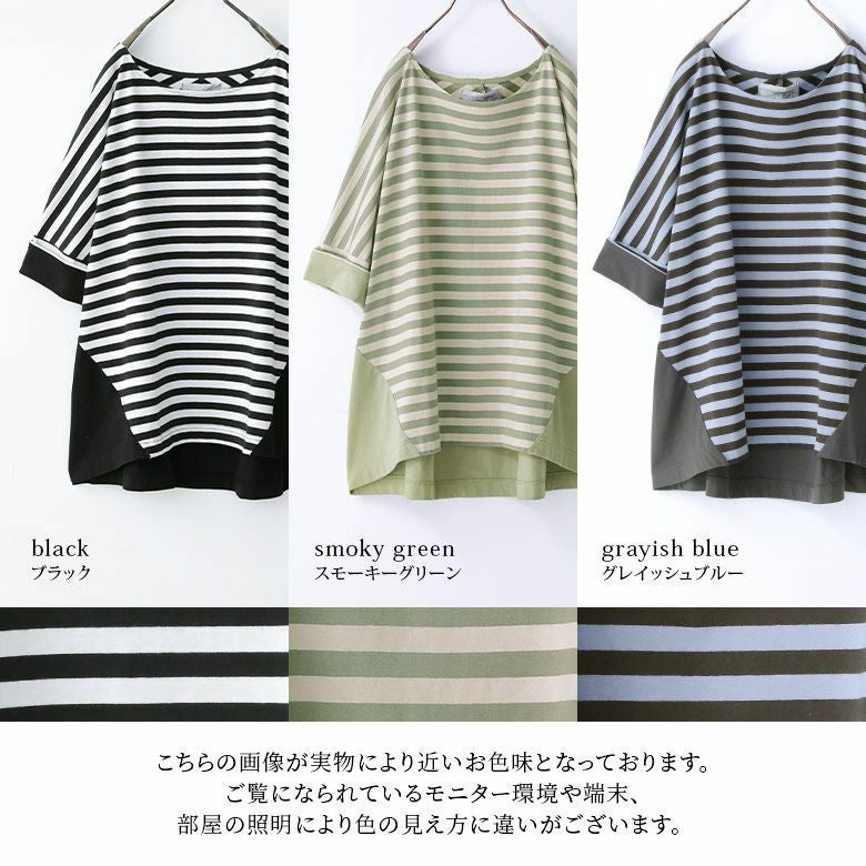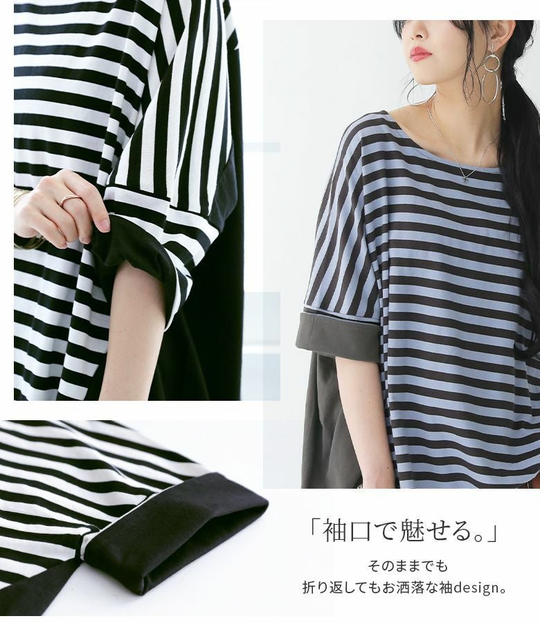 大人女子のお洒落に欠かせない、ボーダー×無地の配色切り替えカットソー♪
