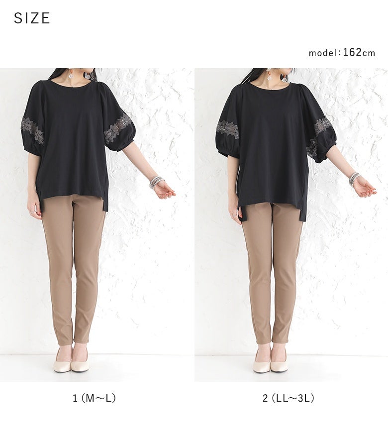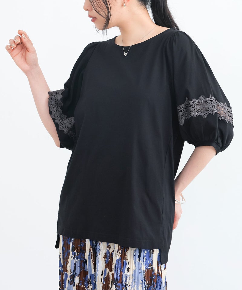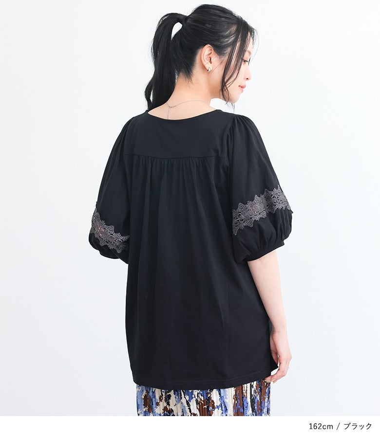 選べるM~3Lサイズ展開!魅力を惹き立てるレース付きカットソー♪