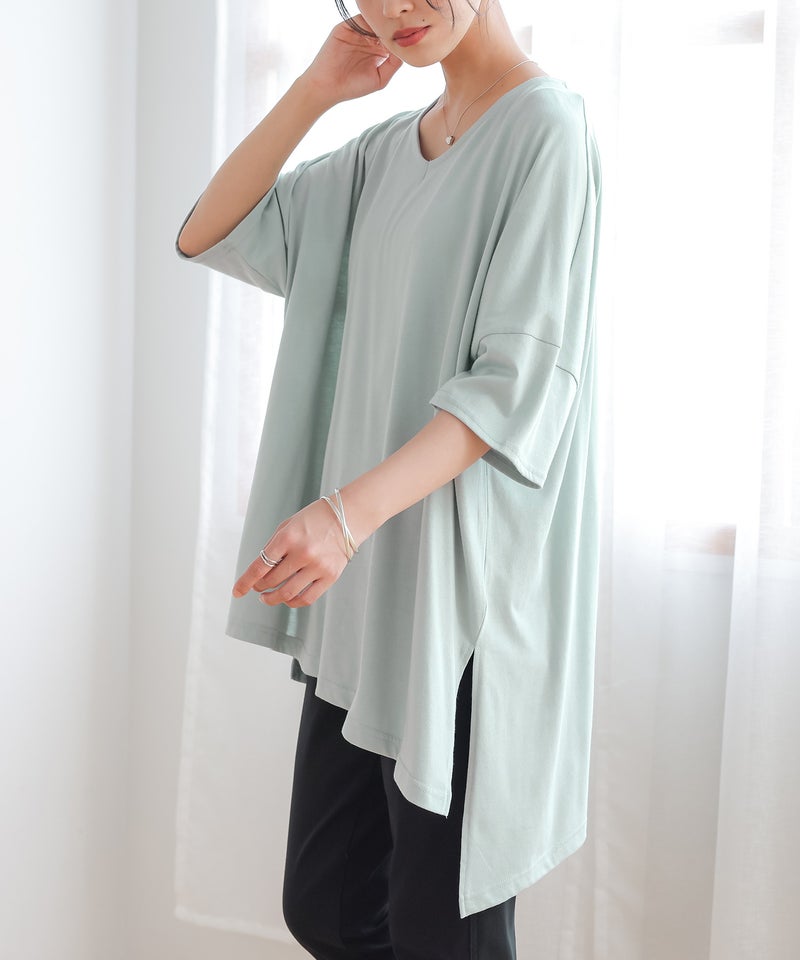 差のつくお洒落を叶える、絶妙アシメシルエット。前後の着丈差&サイドスリットと、華奢見せを叶えるビッグシルエットで抜け感を演出します。