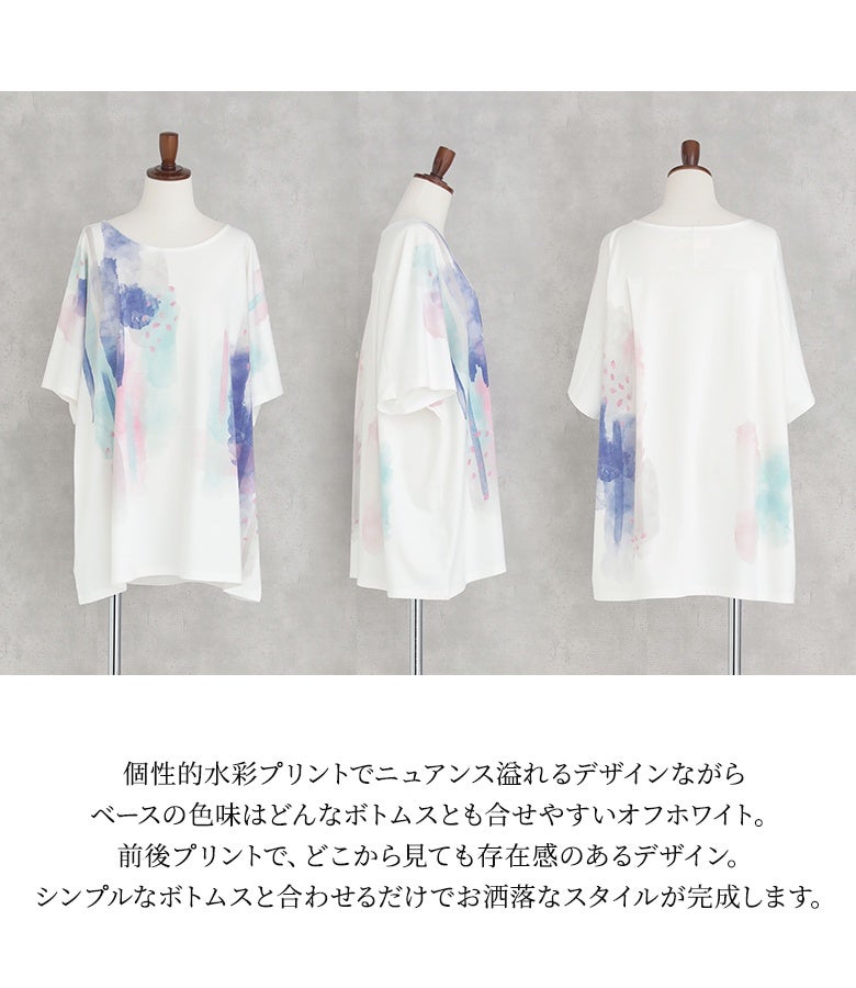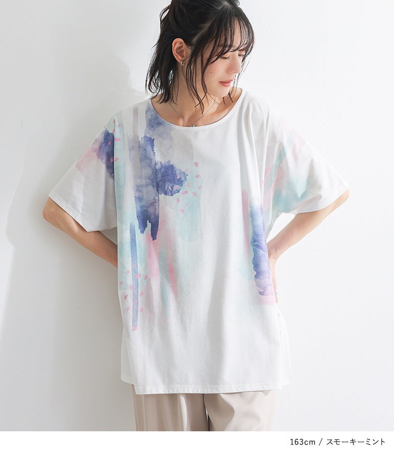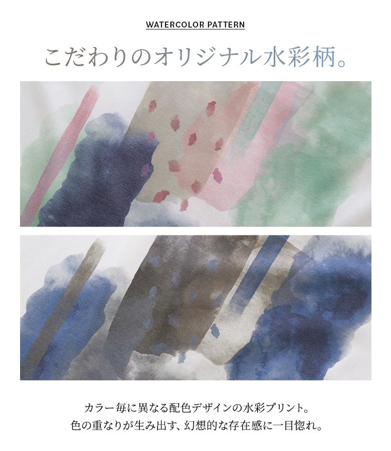 カラー毎に異なる配色デザインの水彩プリントを前後に施し、色の重なりが生み出す幻想的な存在感に一目惚れ。