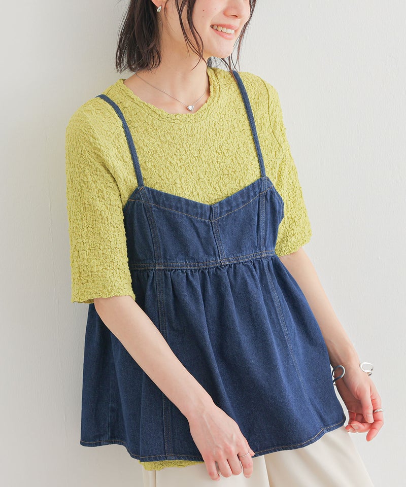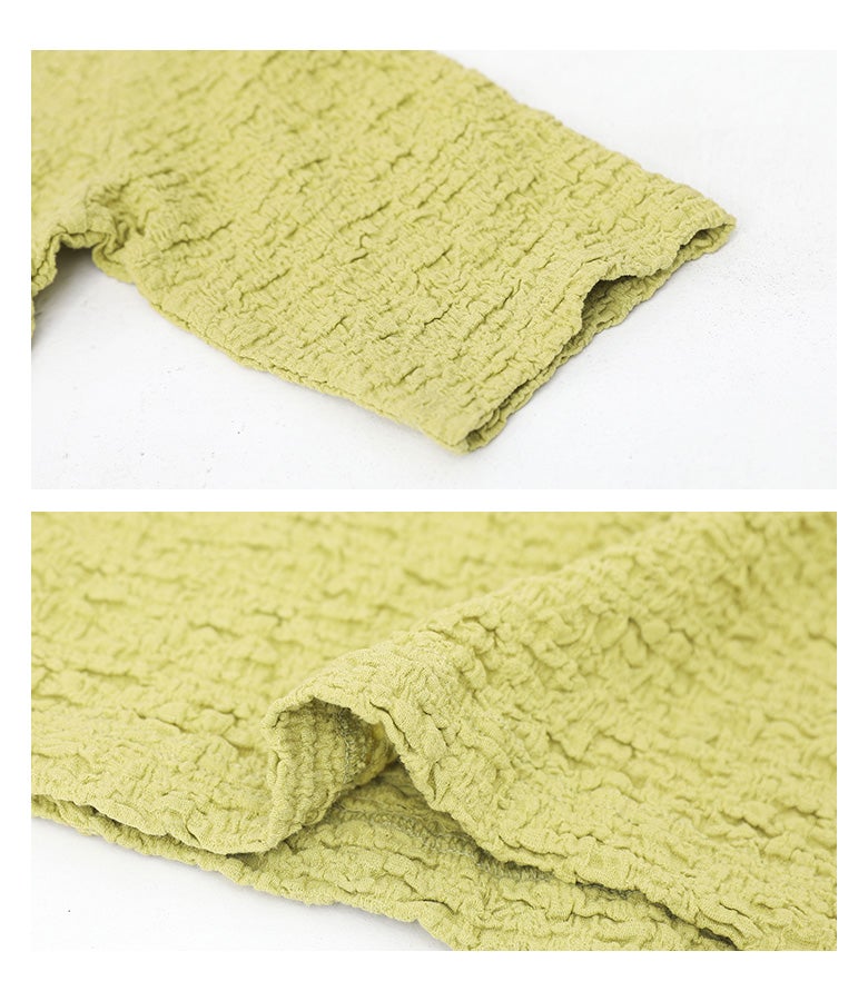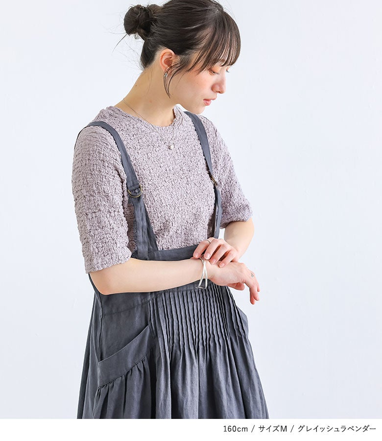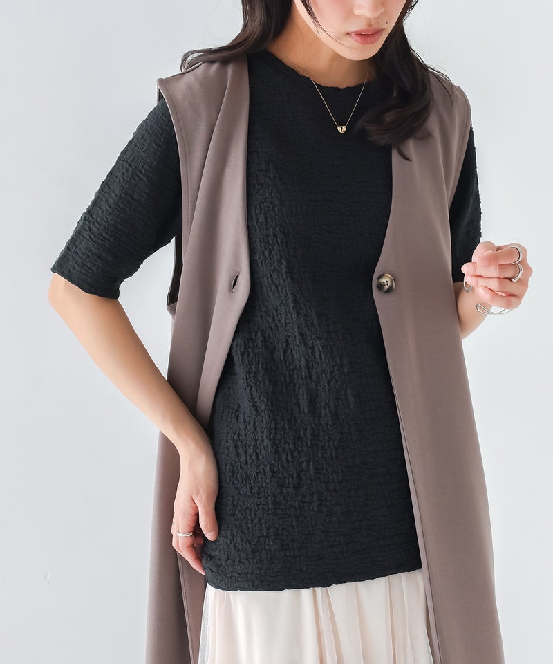 思わず触れたくなるぽこぽことした凹凸感のある素材で、着こなしにアクセントをプラス。シンプルでもお洒落見えする五分袖Tシャツです。