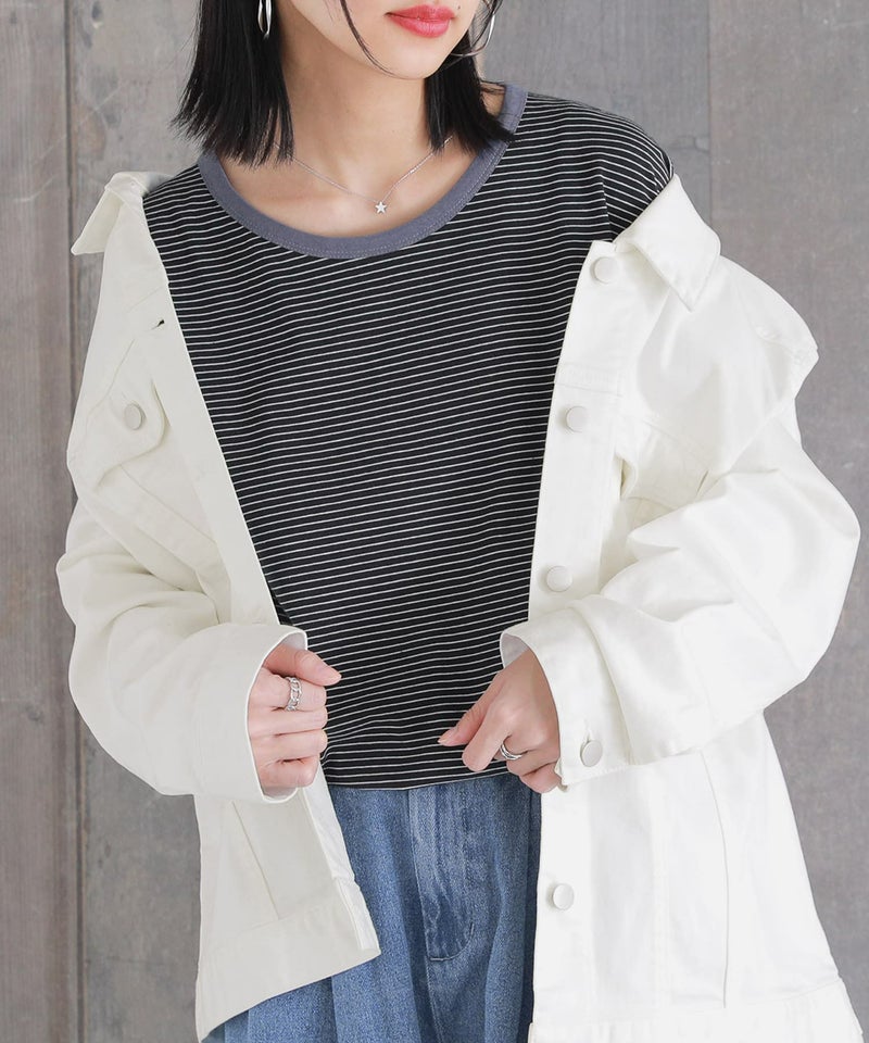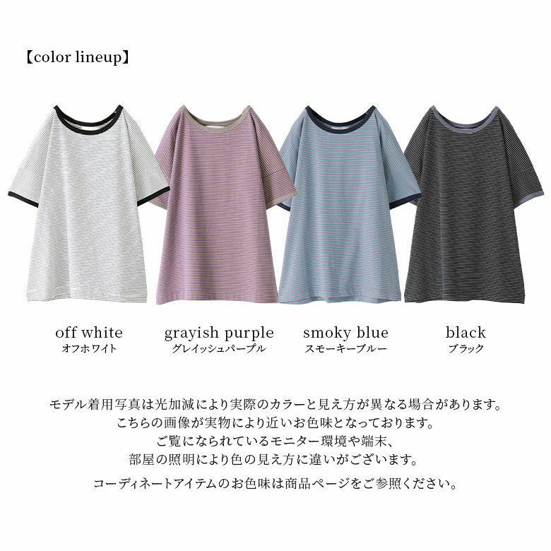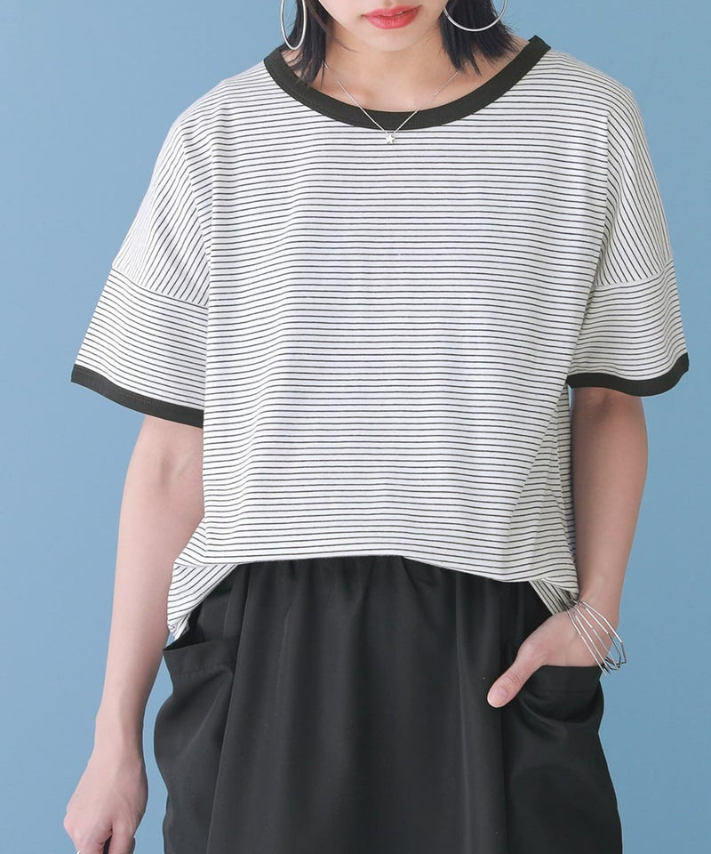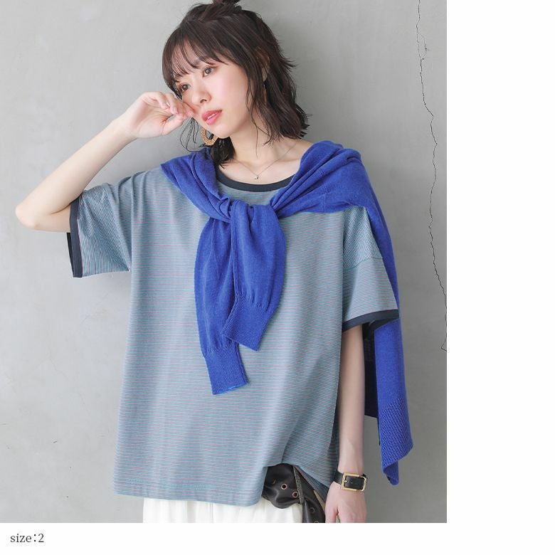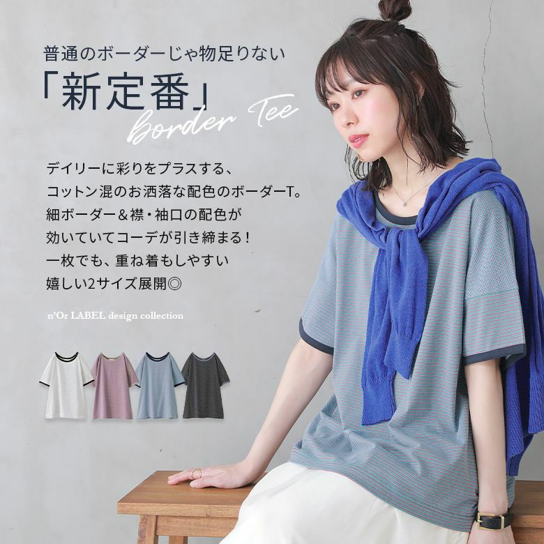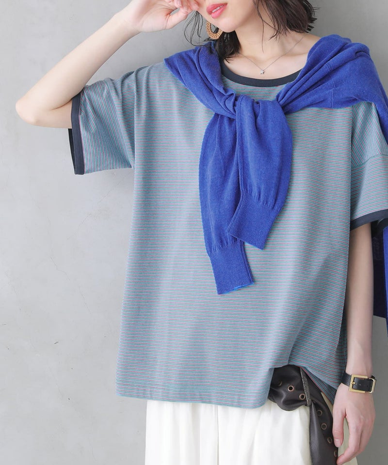 デイリーに彩りをプラスする、コットン混のお洒落な配色のボーダーT。細ボーダー&襟・袖口の配色が効いていてコーデが引き締まる!一枚でも、重ね着もしやすい嬉しい2サイズ展開です。