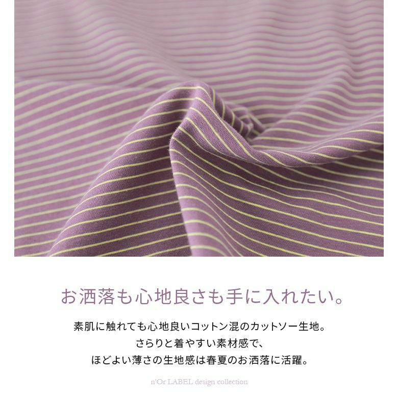 素肌に触れても心地良いコットン混のカットソー生地を使用。さらりと着やすい素材感で、程よい薄さの生地感はこれからの季節に活躍します♪