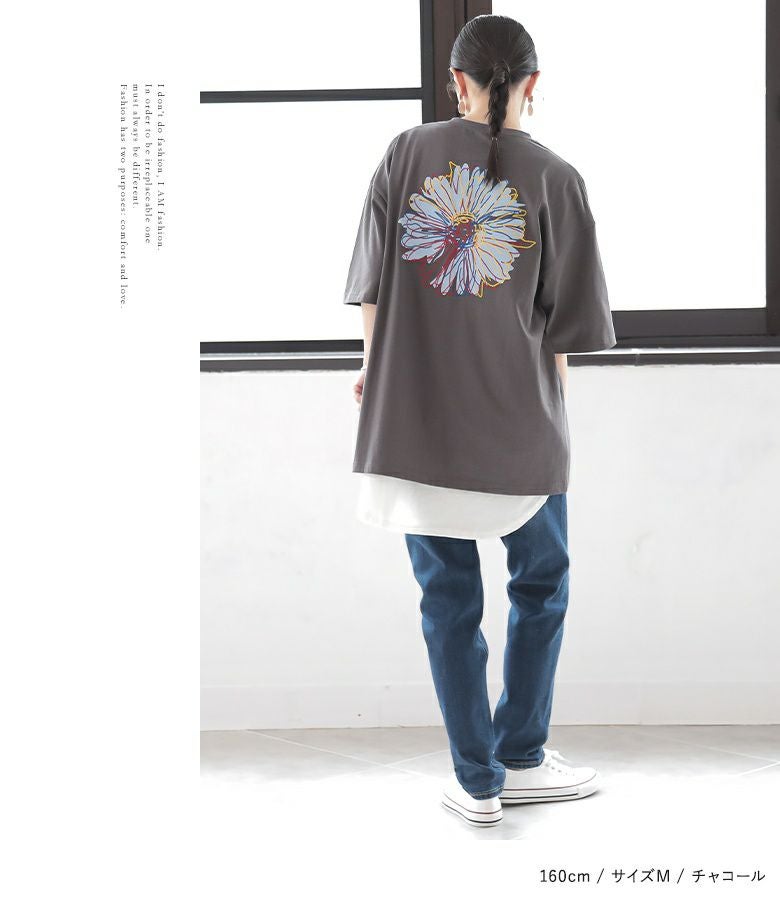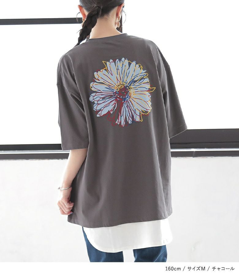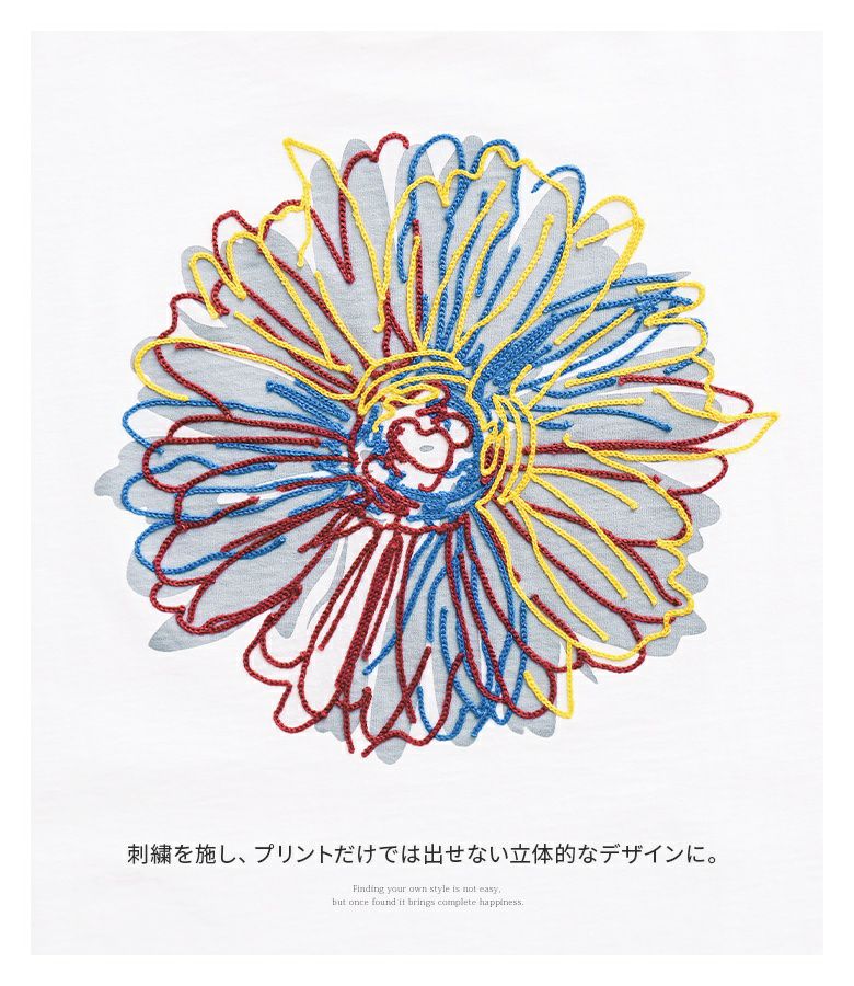 大胆な花柄バックプリントに刺繍を施し、プリントだけでは出せない立体的なデザインに。フロントにもポイントになる刺繍を施した、着るだけで周りと差のつくスタイルを叶えるTシャツです。