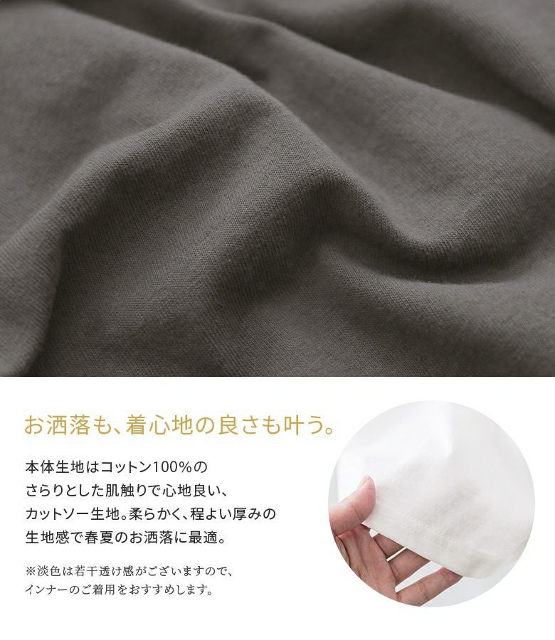 本体生地はコットン100%の、心地良い肌触りを叶えるカットソー生地を使用。