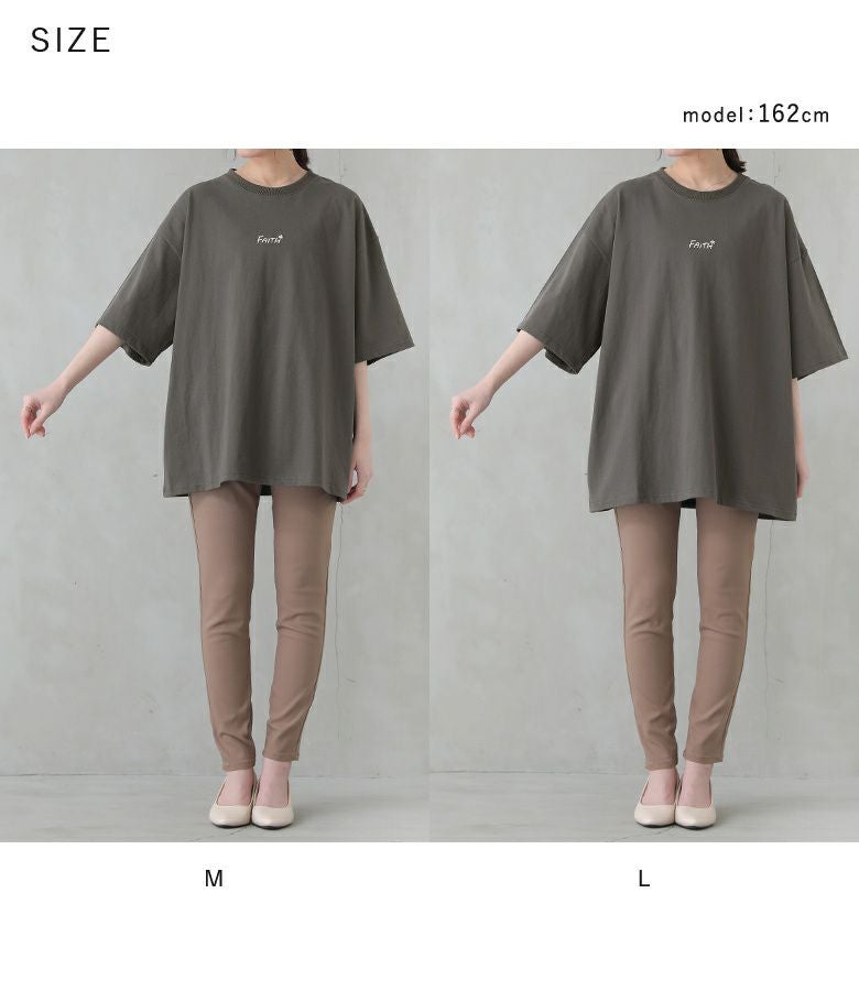 Mサイズは、一般的なMサイズより大きめのサイズ感で、全体的に十分にゆったりと体に沿わずに着られました。Lサイズは、さらにゆったりとビッグシルエットで着られました。私の場合は、よりゆったりと着たいのでLサイズを選びます♪