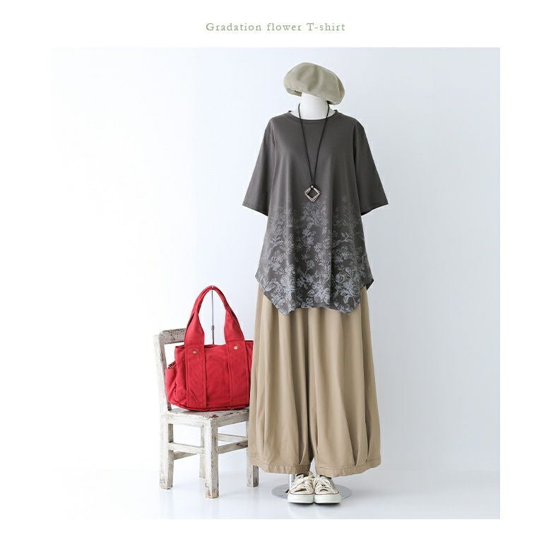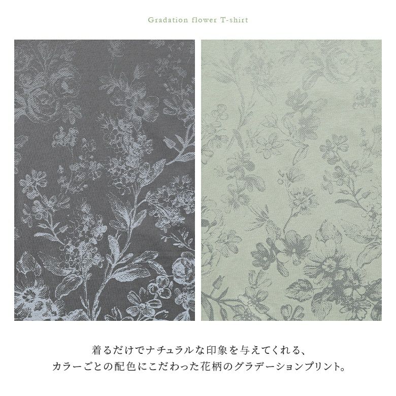 お洒落な抜け感を演出♪花柄グラデーションTシャツ。