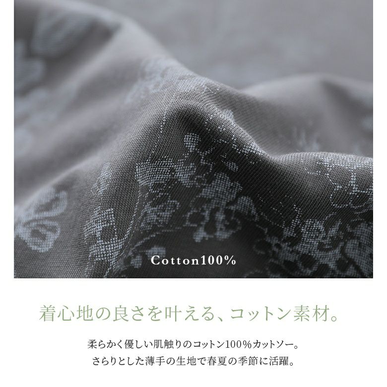 柔らかく優しい肌触りのコットン100%カットソー。さらりとした薄手の生地でこれからの季節に活躍します。