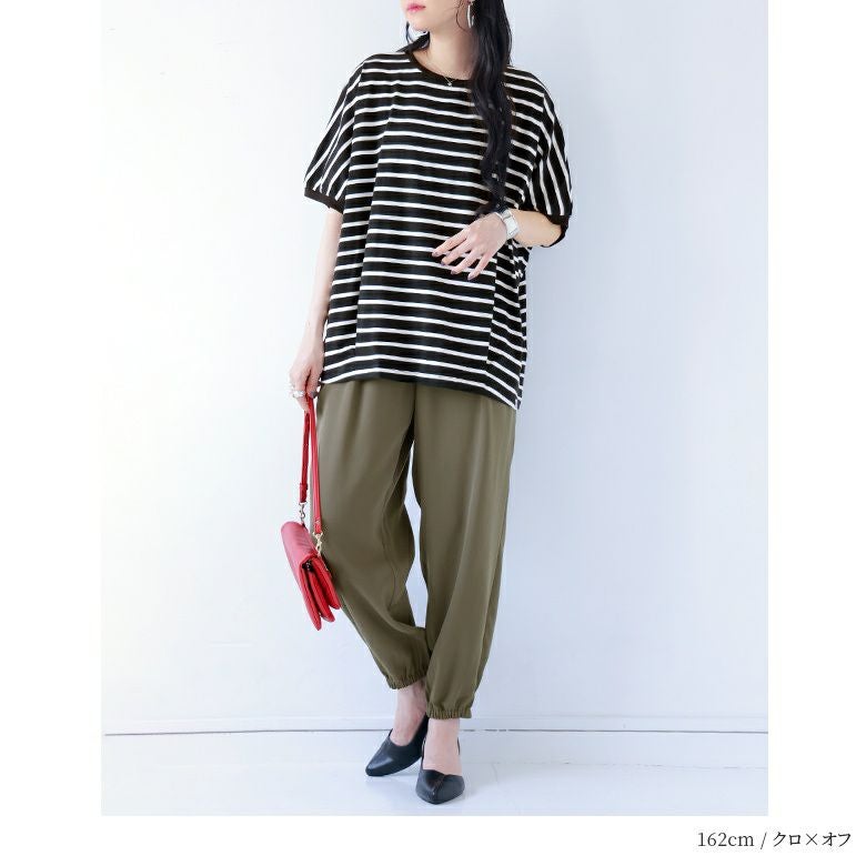 ゆるっとラフなドルマンシルエットでこなれ感アップ。季節感漂う、配色ボーダーデザインで着回し力も叶える大人の定番Tシャツ。