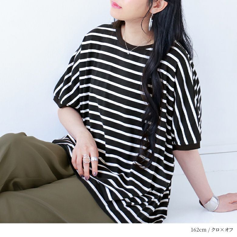 『接触冷感ドルマンボーダーTシャツ』