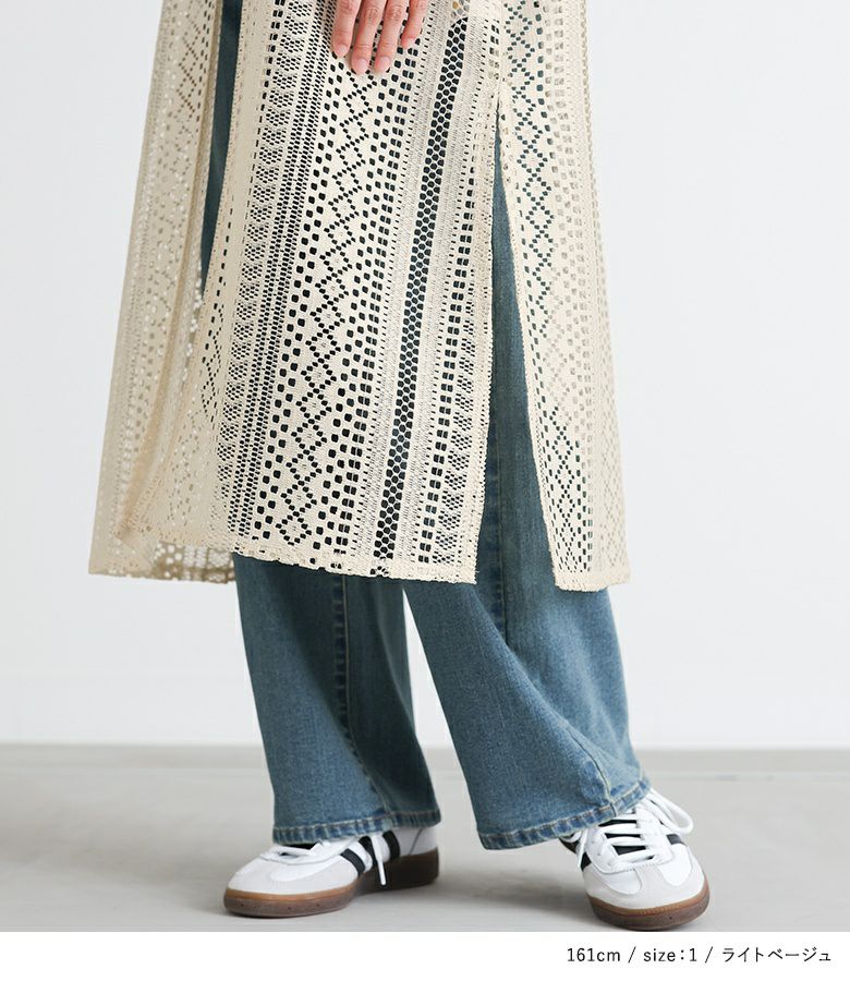 Tシャツはさらっと心地良い肌触りの天竺カットソー。レースは適度に厚みのあるポリエステルレースで、透け感が涼し気な生地感です。