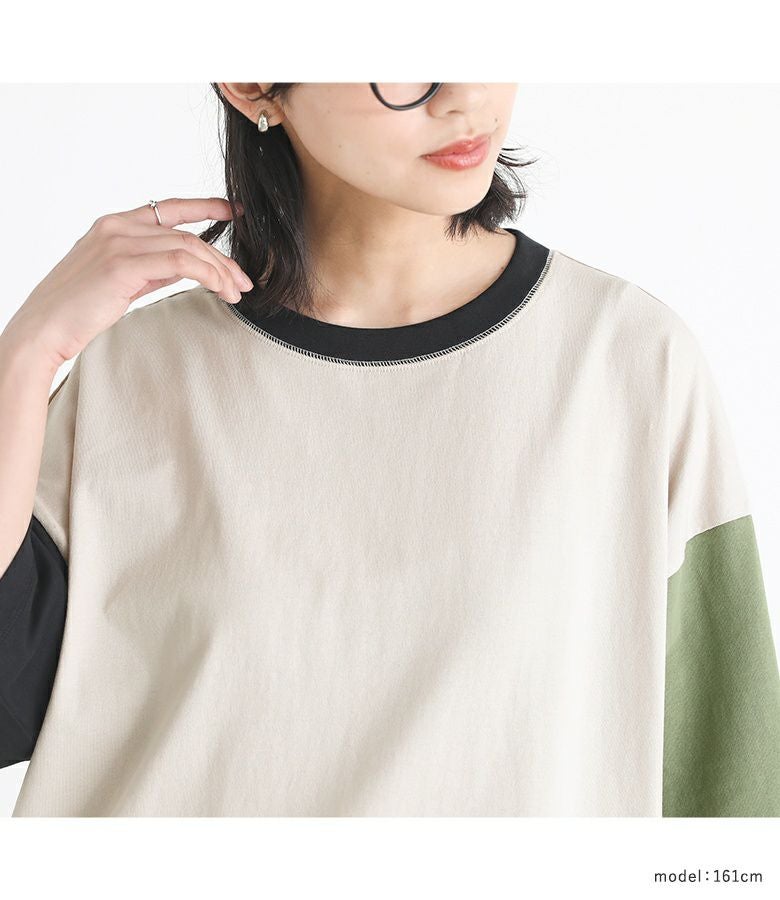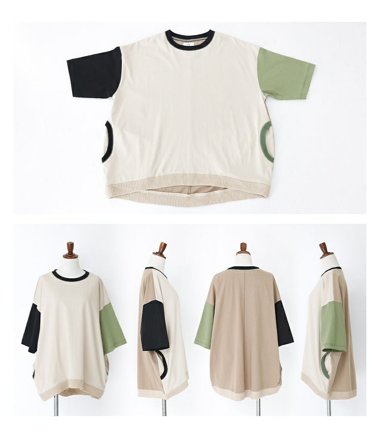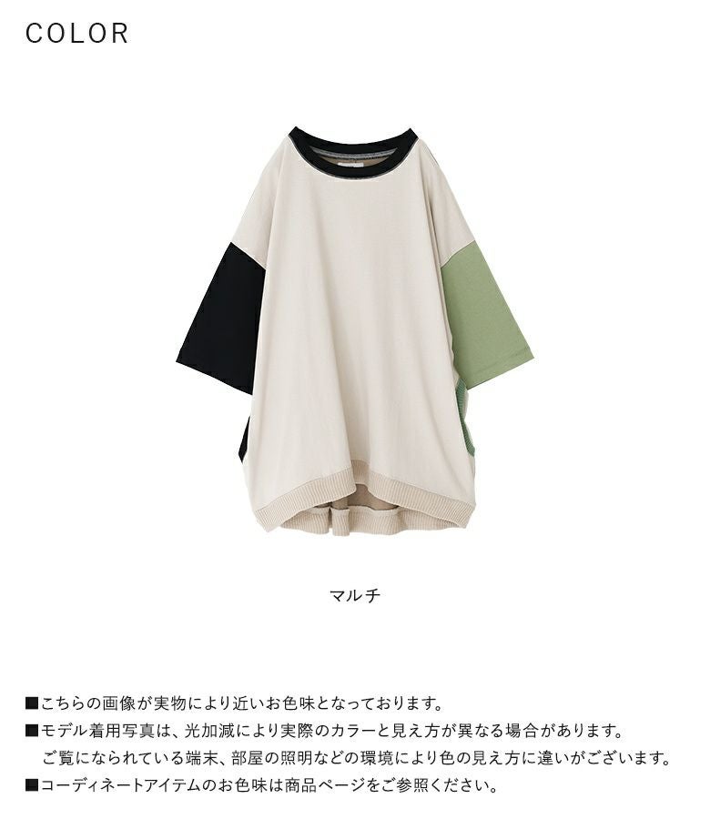 『マルチ配色リブ切替デザインTシャツ』