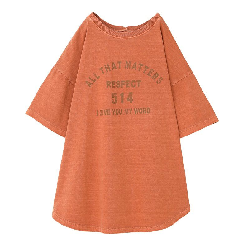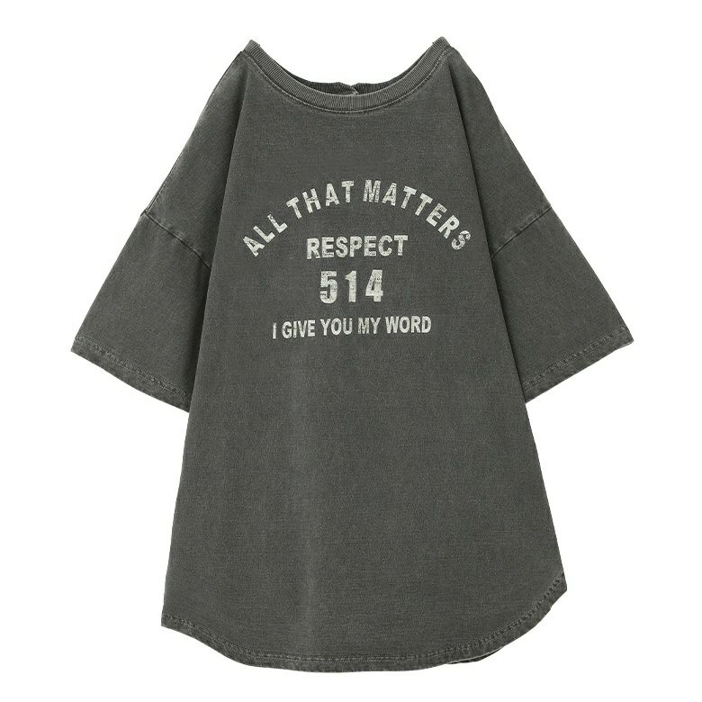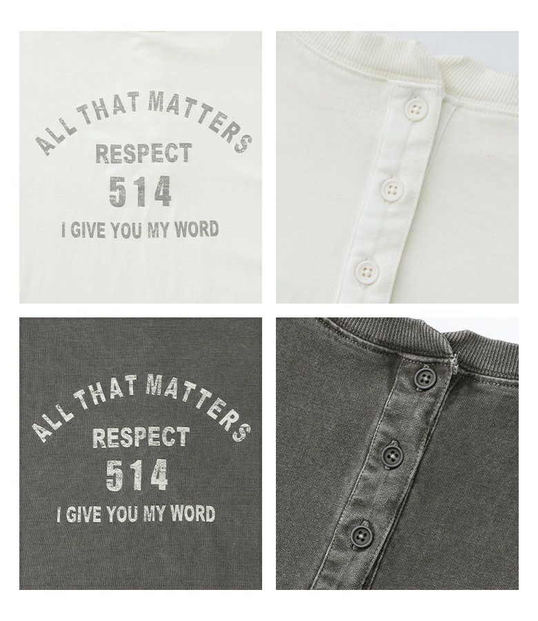 ピグメント加工を施して古着っぽさを出したカレッジロゴTシャツ。後ろボタンがアクセントになります。少し長めの着丈のゆるっと着られるサイズ感と、サイドカーブラインで抜け感も演出します。