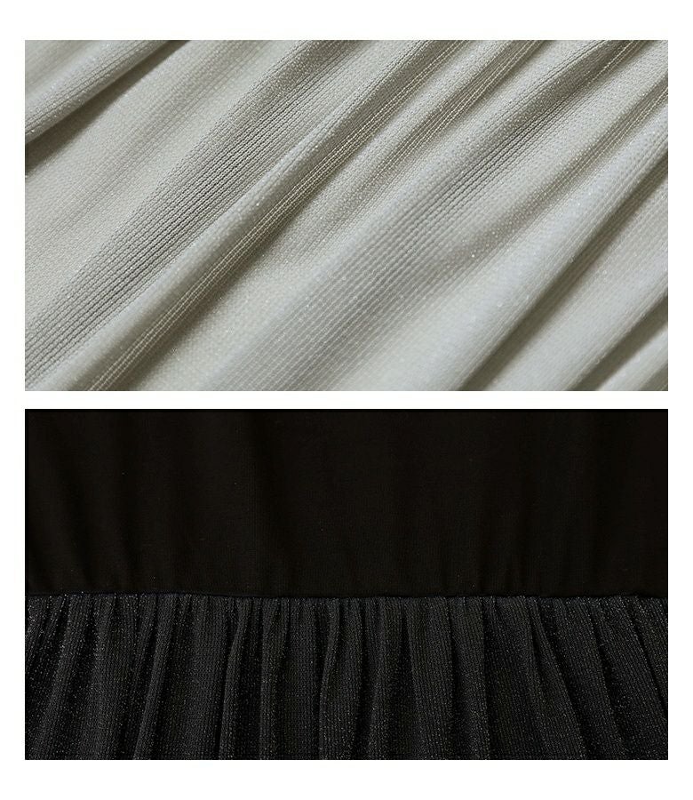 切り替え部分にシアー感のあるラメ生地を使用したプルオーバー。