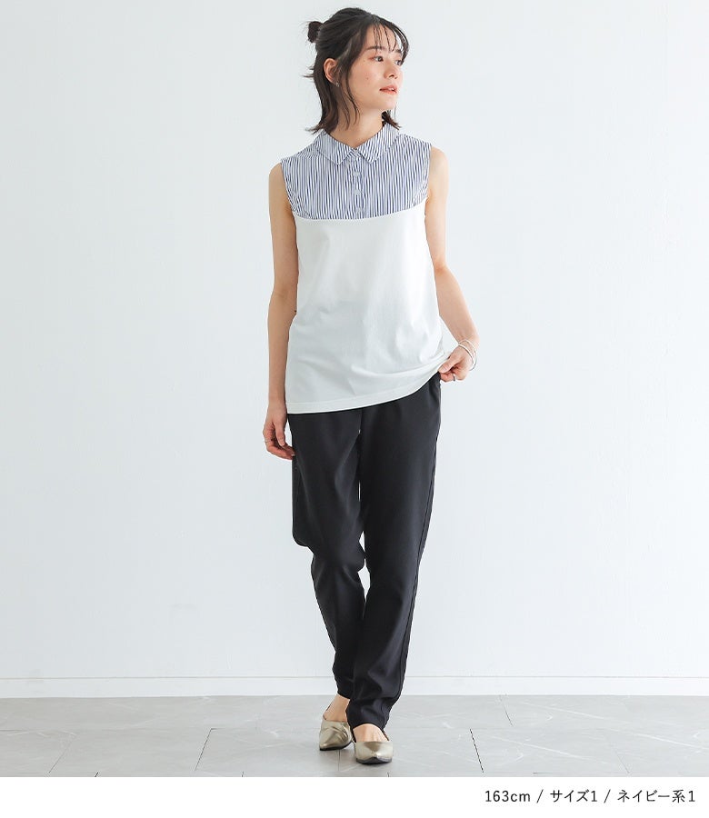 【普段着用】 Tops: S/M Bottoms:S/M | 【1】 着丈:ヒップ真ん中より下位 腕周り:ジャスト バスト:ジャスト 全体:スッキリ