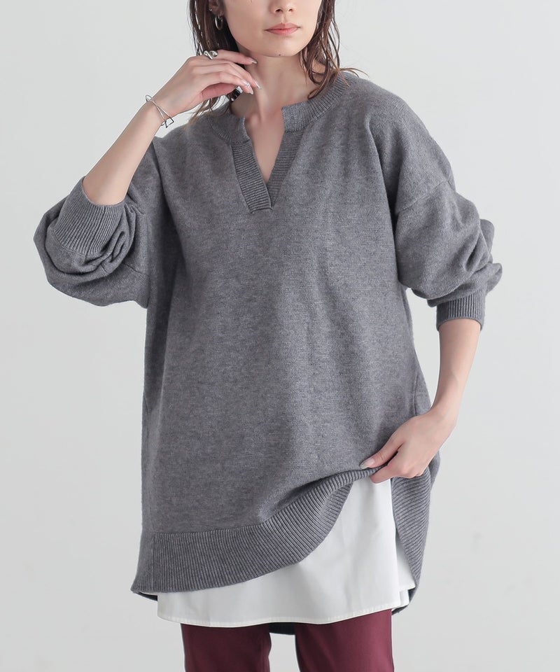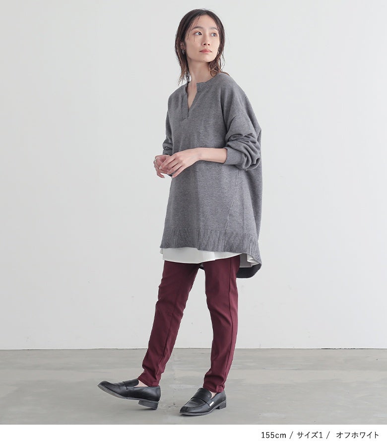 ゆるやかなAラインシルエットでどんなボトムスとも好相性な一枚です。羽織りやサロペットなどのインに着るレイヤードスタイルのほか、さらっと一枚でもご着用いただけます。