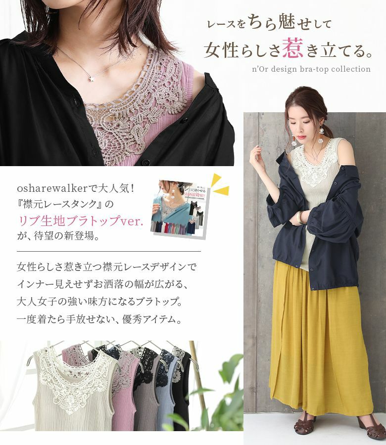 『n'OrLABEL襟元レースランダムリブブラトップ』