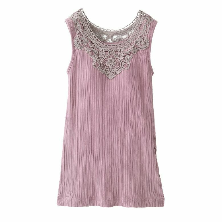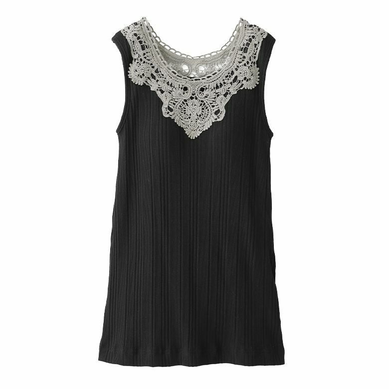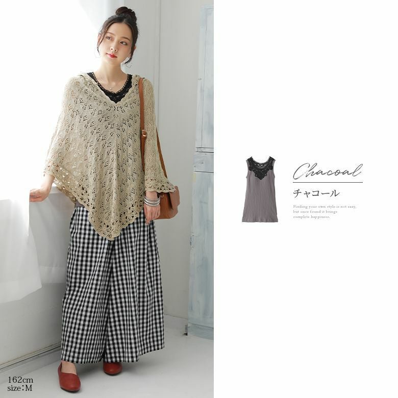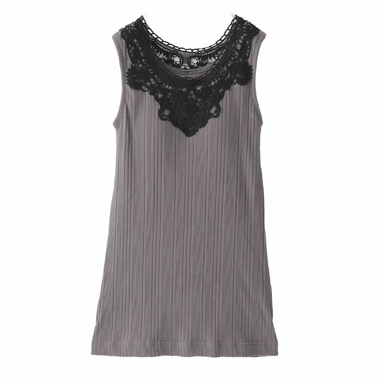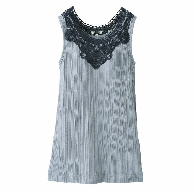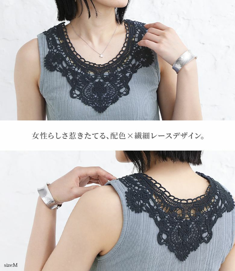 大人の女性のコーデが広がる≪n'OrLABEL≫襟元レースランダムリブブラトップです。