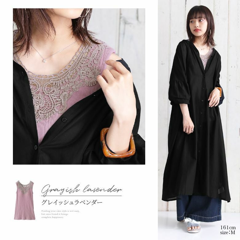 チラリとみえるときに、肌着っぽくもなく、おしゃれにみえるのがよいと思います。
