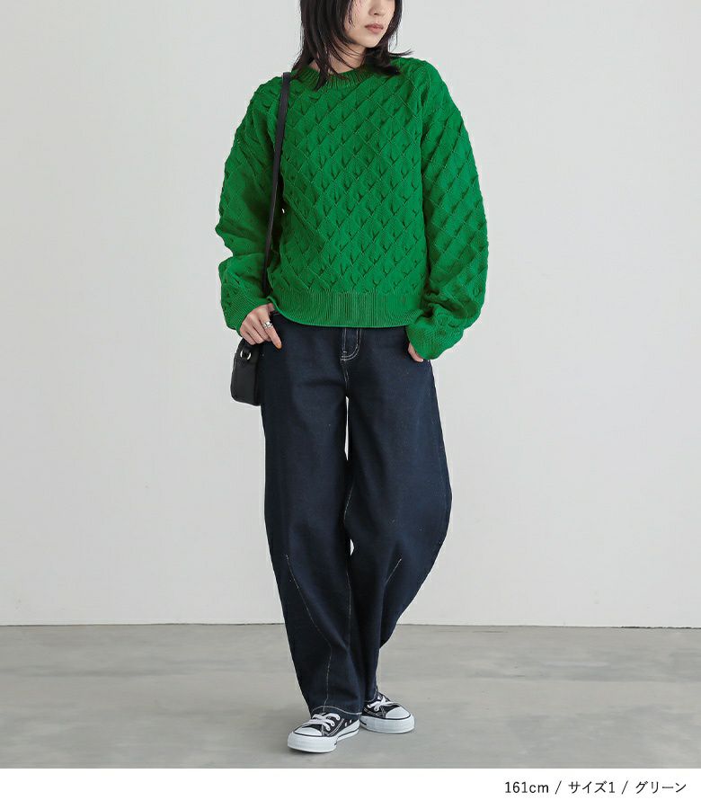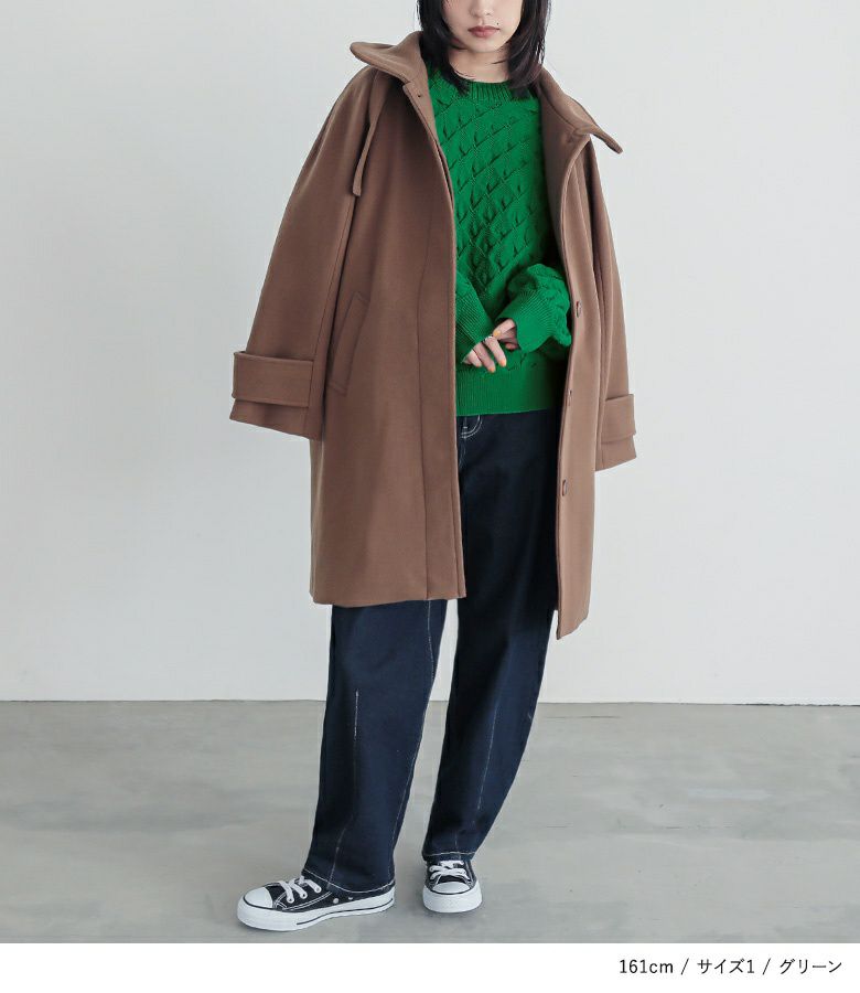 【2】 袖丈:指先が少し見える位 着丈:ヒップ真ん中位 腕周り:ややゆったり バスト:ややゆったり 全体:ゆったり
