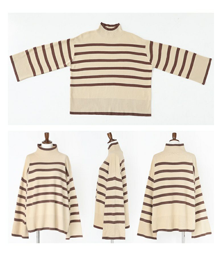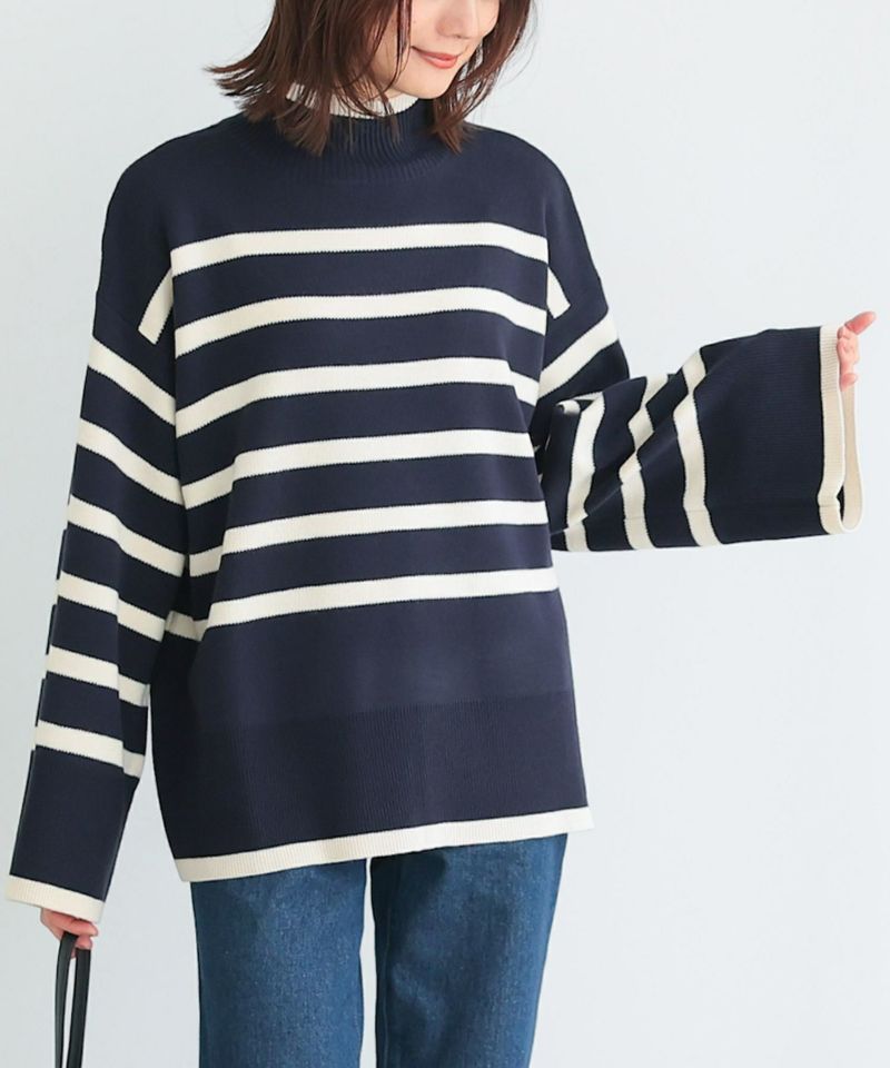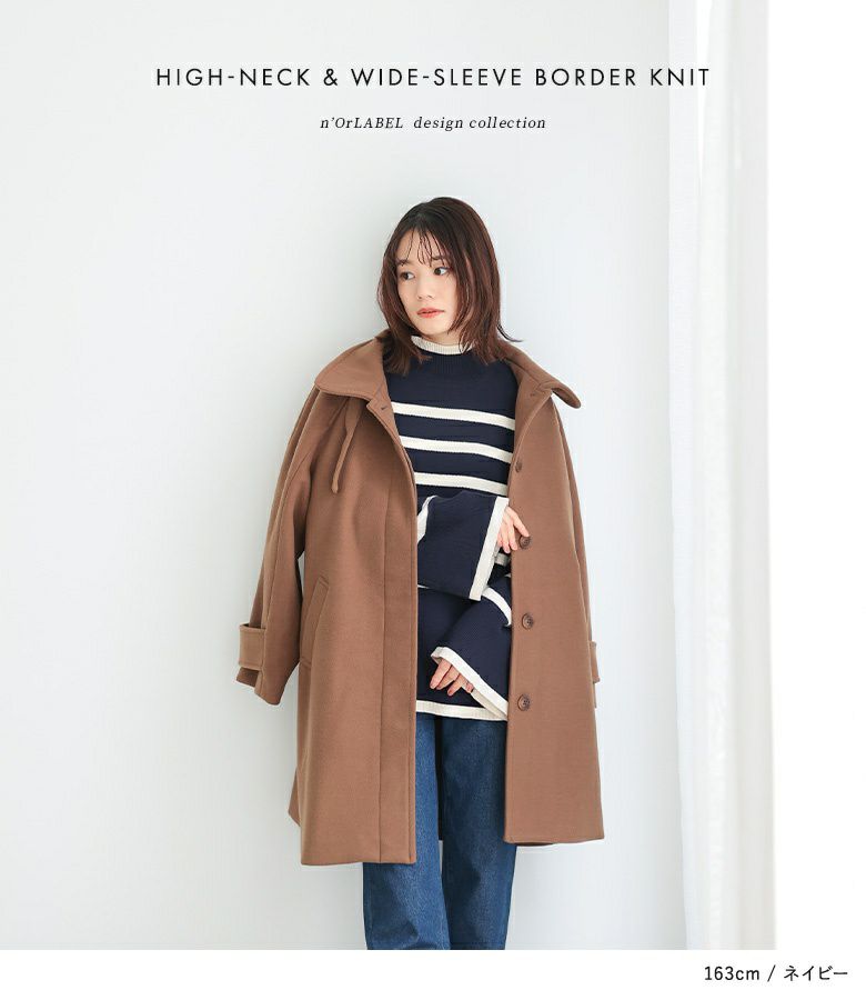 『n'OrLABELハイネックワイドスリーブボーダーニット』