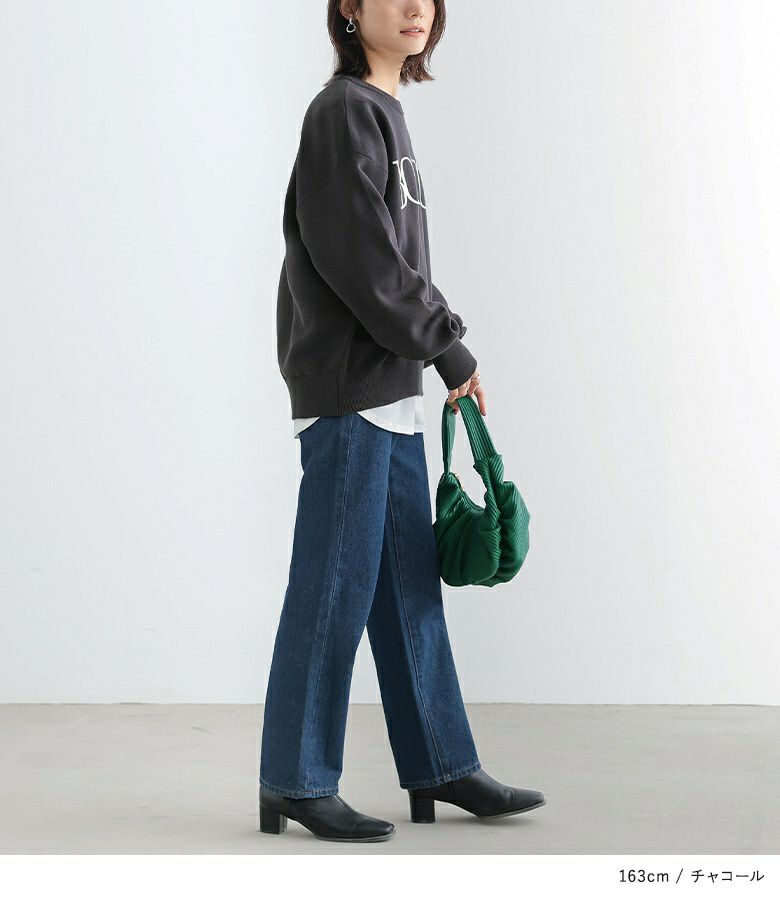 編み目が細かく密度の高いハイゲージ編みのスウェットライクに着用できるニット。