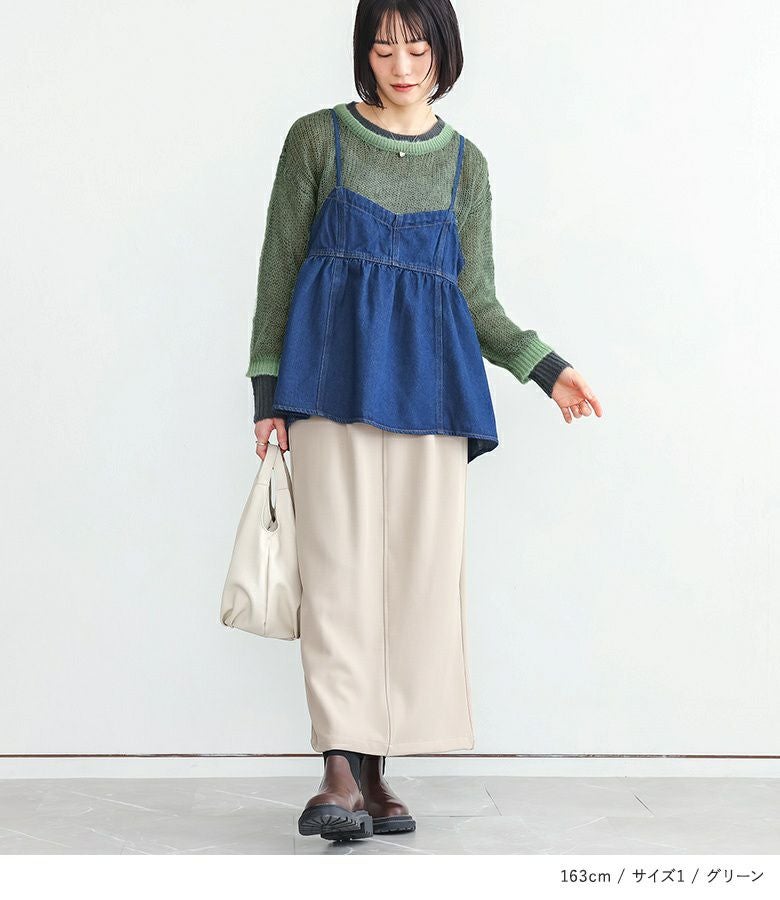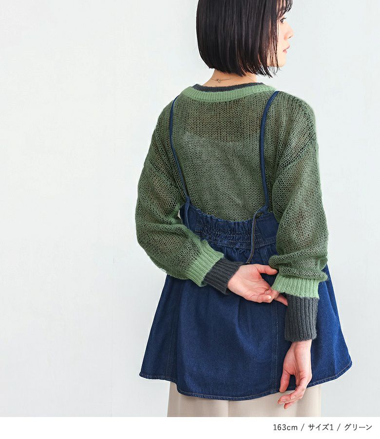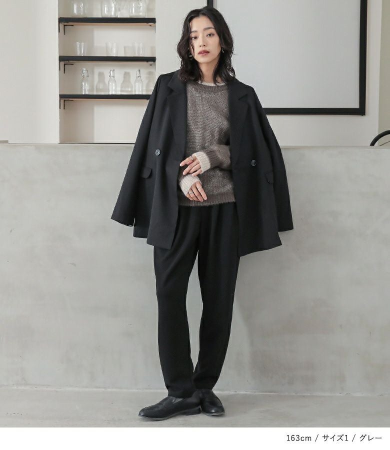 【2】 袖丈:指先が少し見える位 着丈:ヒップ真ん中より下位 腕周り:ややゆったり バスト:ややゆったり 全体:ややゆったり