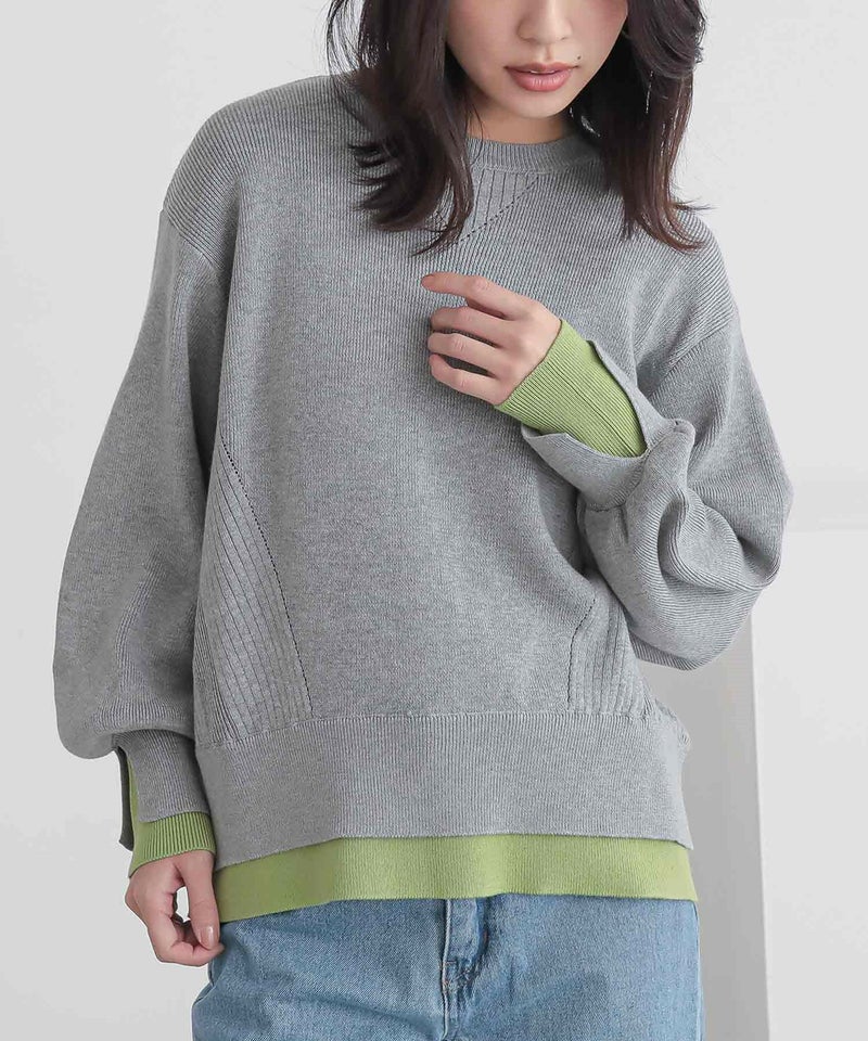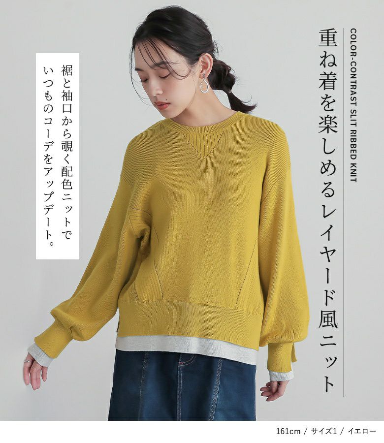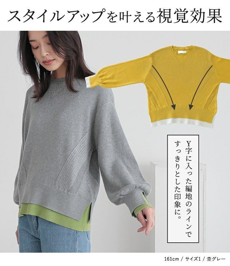 リブ部分が腕やヒップ周りで留まりシルエットが可愛いです。