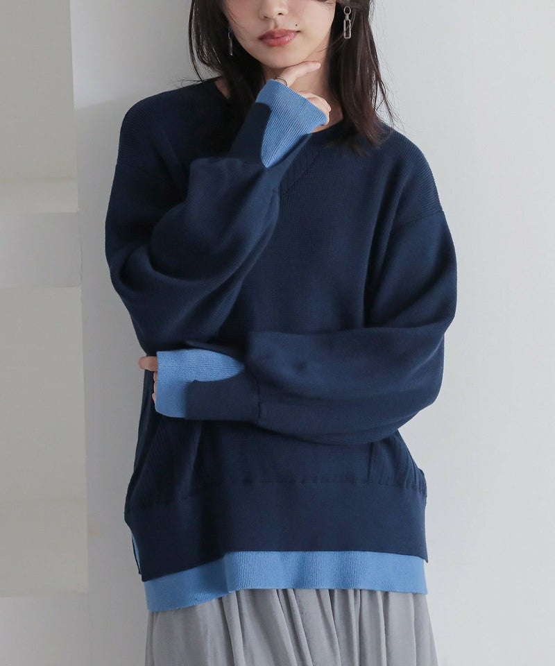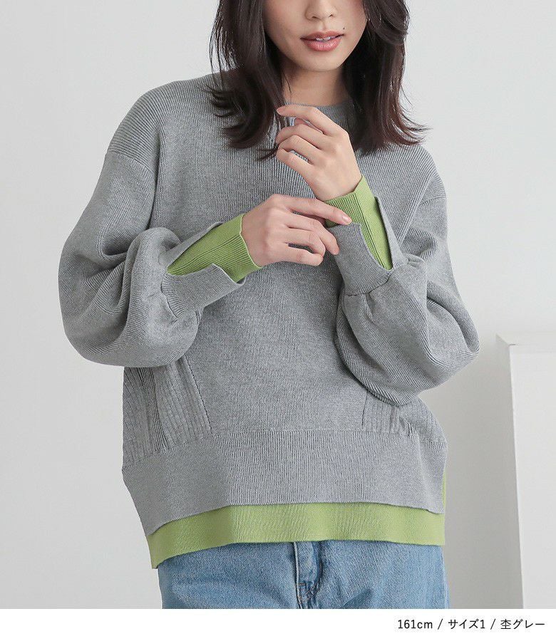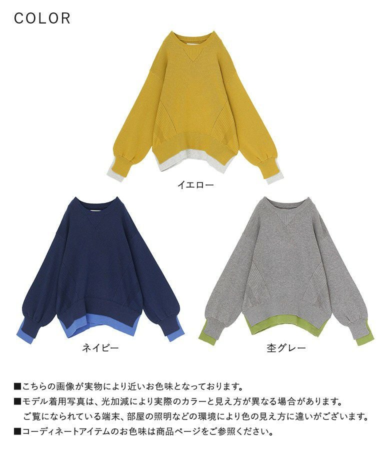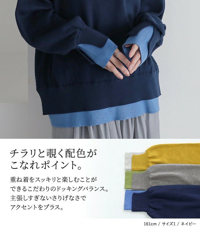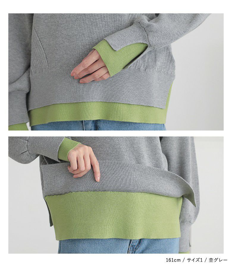 【普段着用】 Tops: L Bottoms: L | 【1】 袖丈:手の甲にかかる位 着丈:ヒップにかかる位 腕周り:ややゆったり バスト:ジャスト 全体:ジャスト