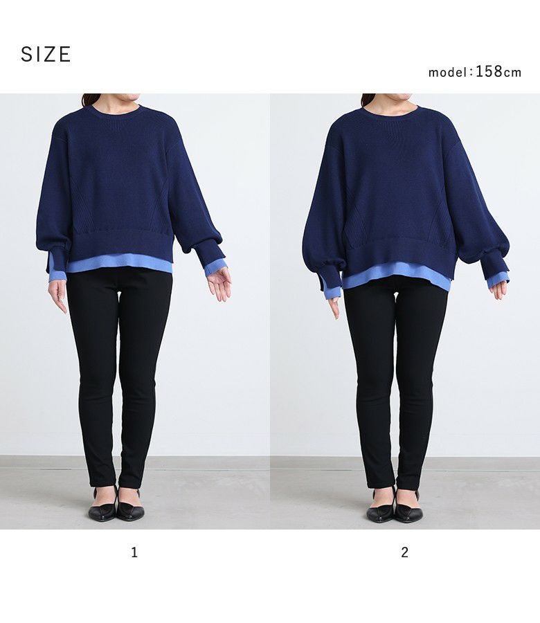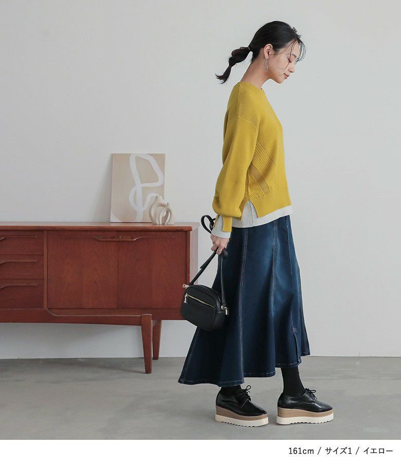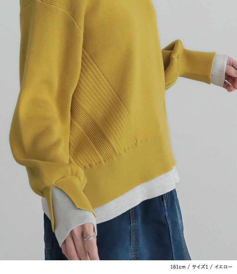 【普段着用】 Tops: M Bottoms: M/L | 【1】 袖丈:手首位 着丈:ヒップ上3cm位 腕周り:ややゆったり バスト:ややゆったり 全体:ややゆったり