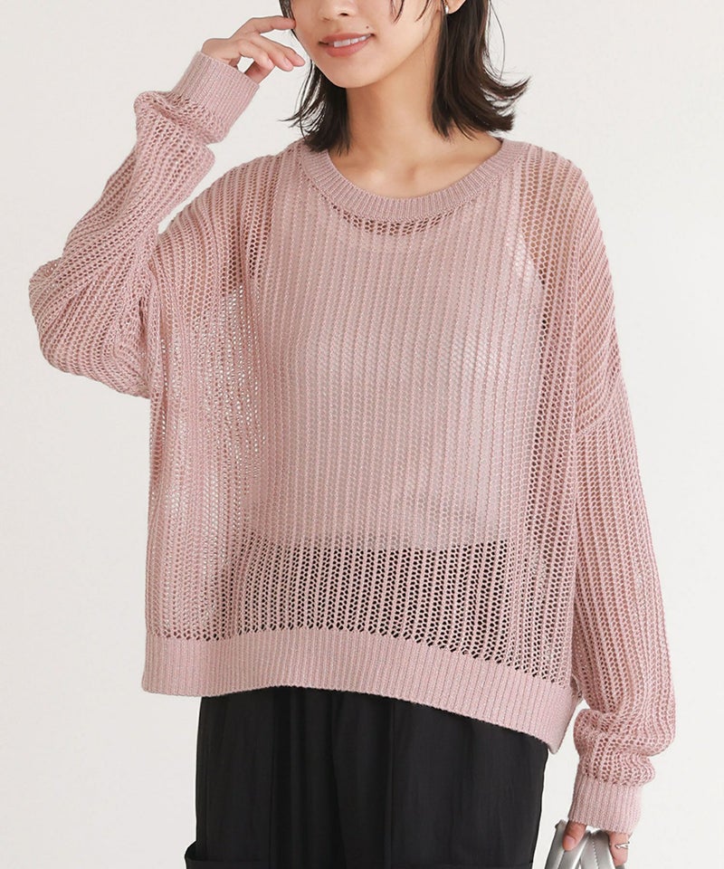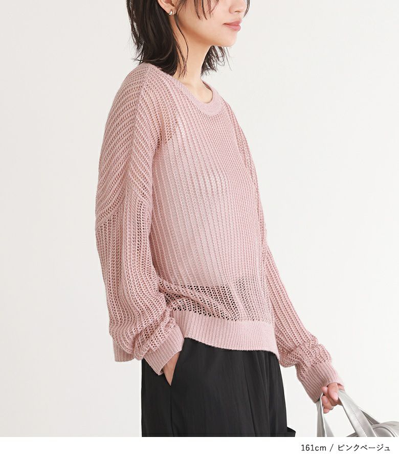 【3/13販売】涼し気なメッシュ編みの長袖ニット。
