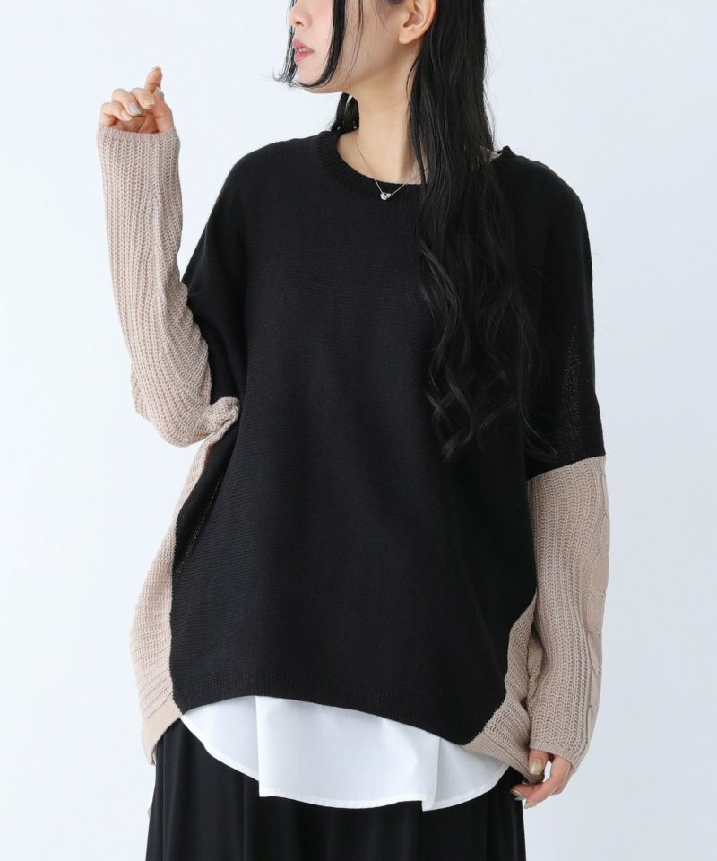 『袖ケーブル配色ニットプルオーバー』