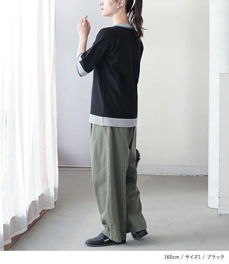 【普段着用】 Tops: L Bottoms: L | 【1】 袖丈:ちょうどひじ位 着丈:ヒップ真ん中位 腕周り:ジャスト バスト:ややゆったり 全体:ややゆったり