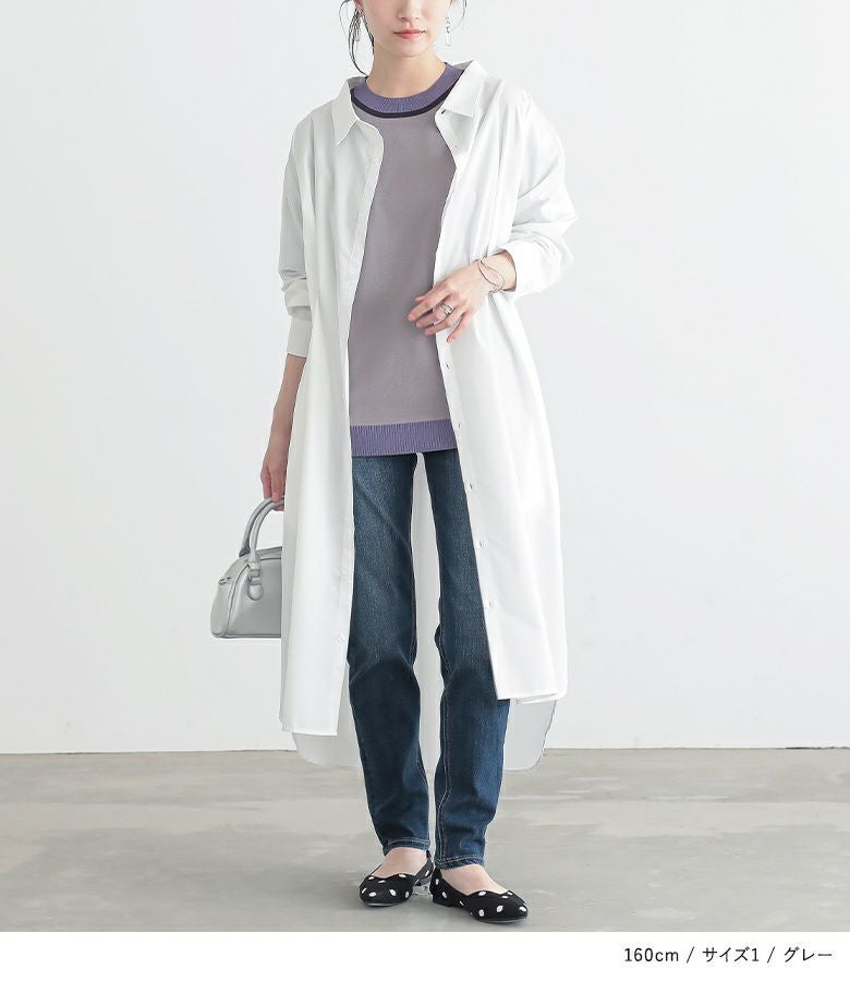 【2】 袖丈:ちょうどひじが隠れる位 着丈:ヒップ真ん中より下位 腕周り:ややゆったり バスト:ゆったり 全体:ゆったり