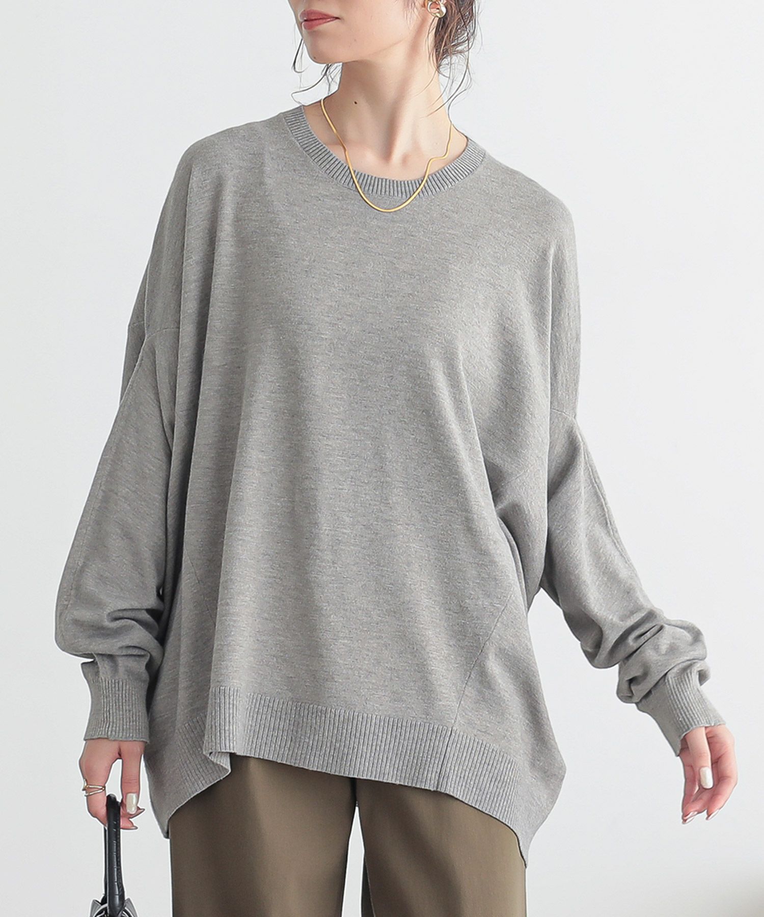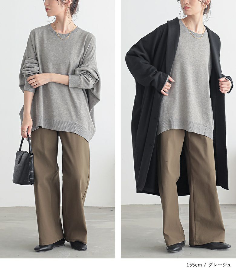 薄手だからすっきり、なのにしっかり暖かいニットトップス。