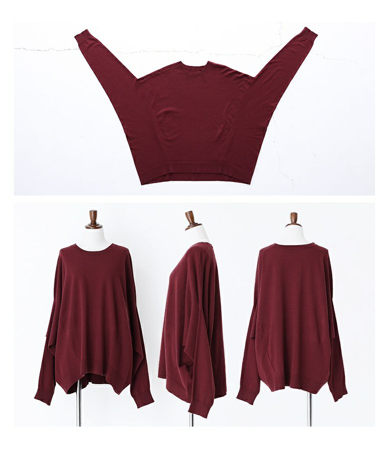 ニット素材の持つ特性として編み上げる行程やプレス仕上げによって多少サイズや風合いの個体差が生じる場合がございます。